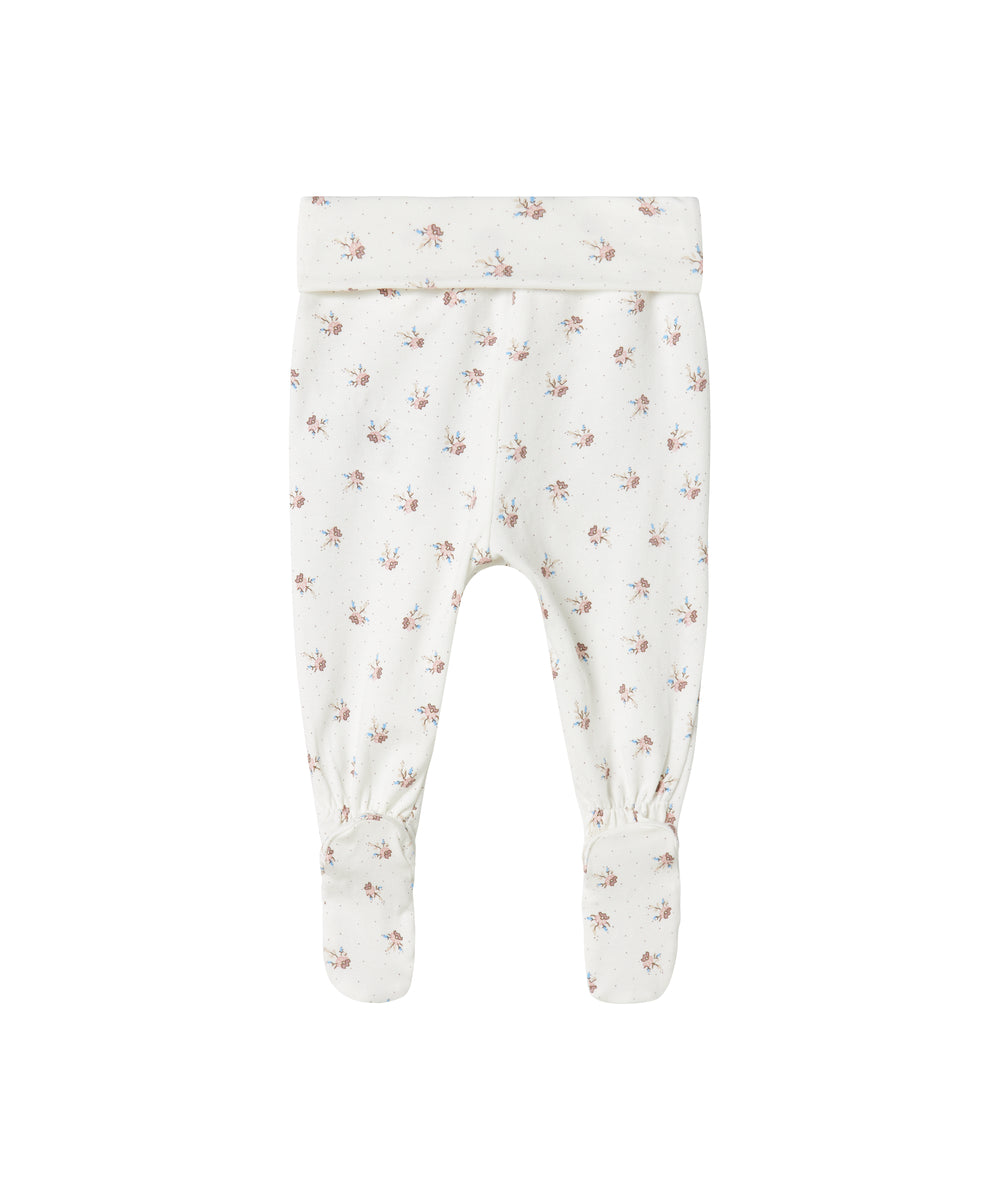 Baby iført grå strikkede selerbukser og mørkegrøn bluse