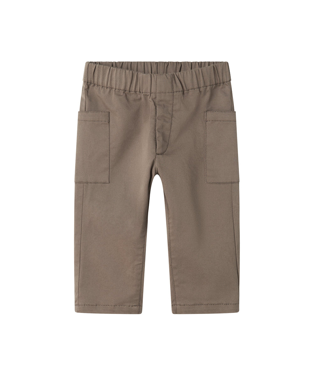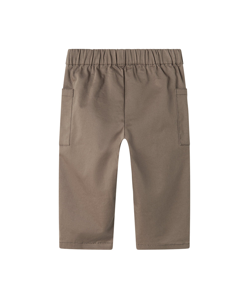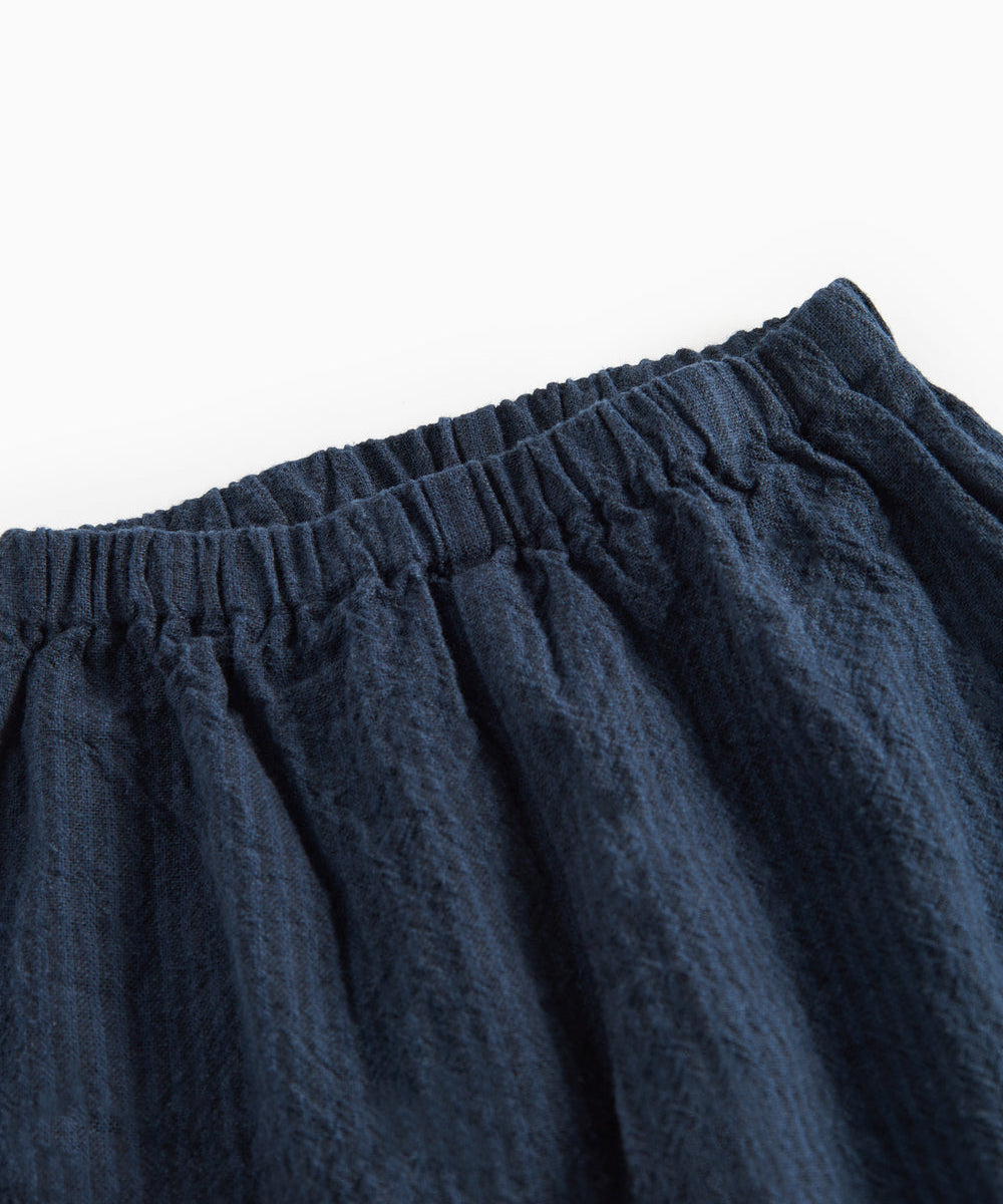 Mørkeblå bukser med elastisk talje og bindebånd i blødt stof til baby