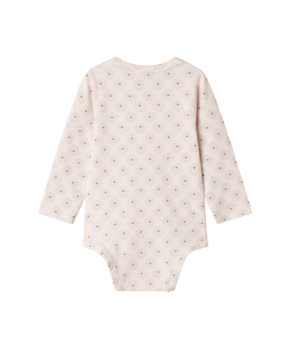 Creme hvid bodystocking med krave og lange ærmer til baby