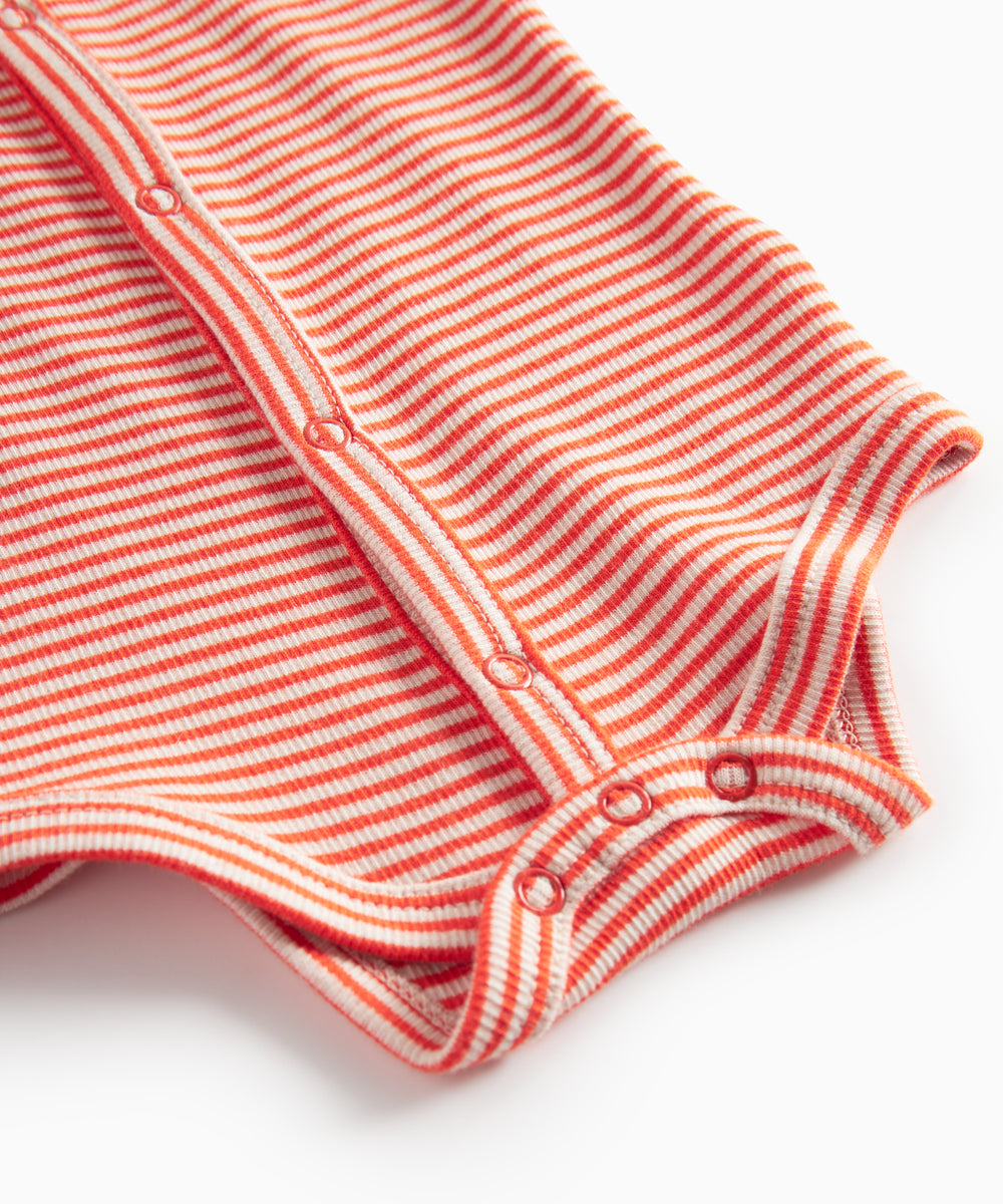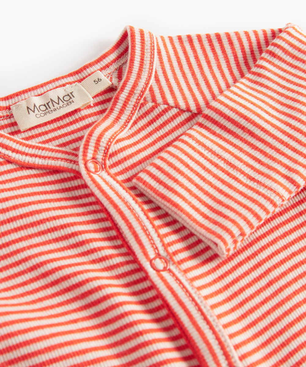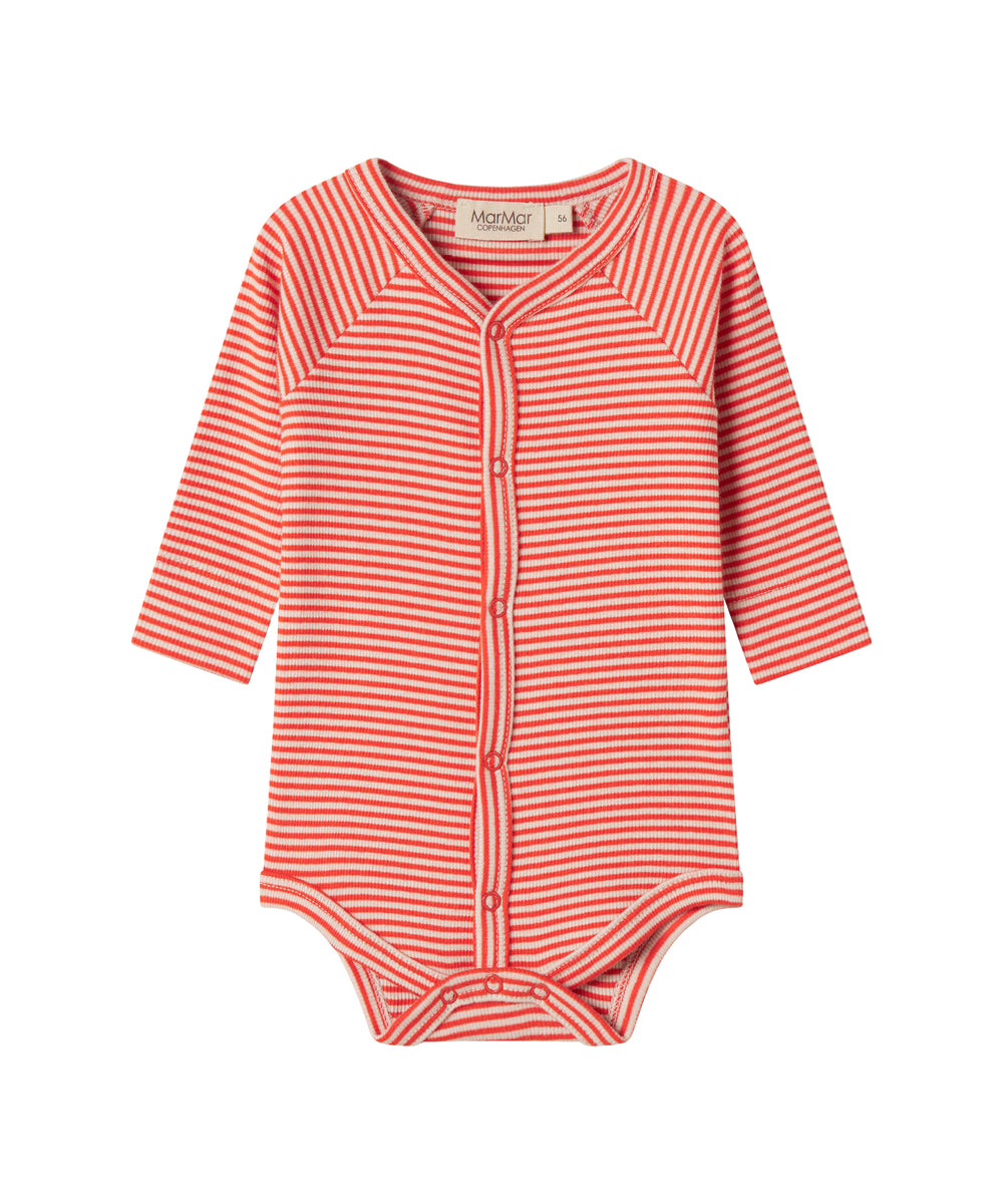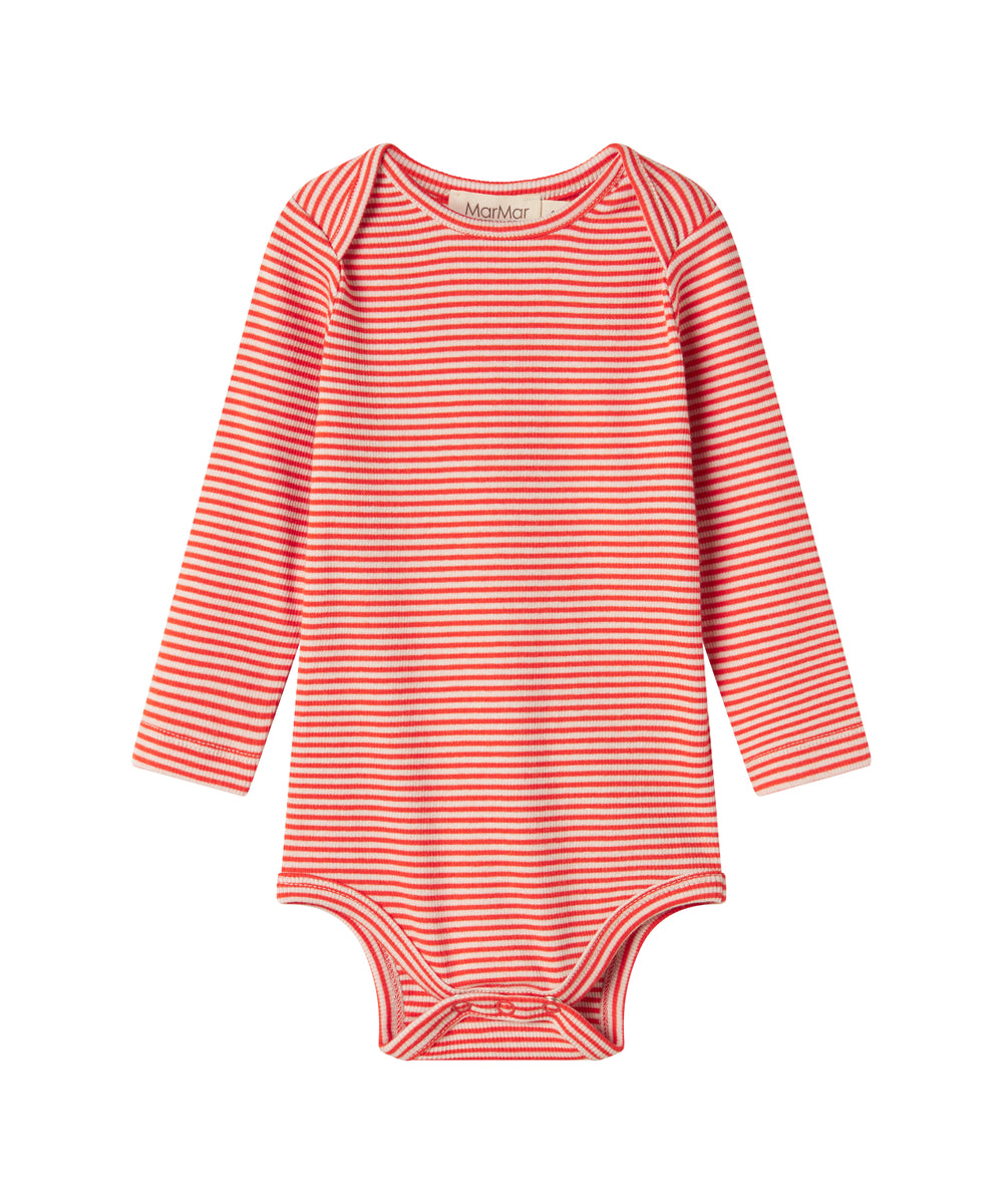 Rød ribbet body med lange ærmer og flæsekrave til baby