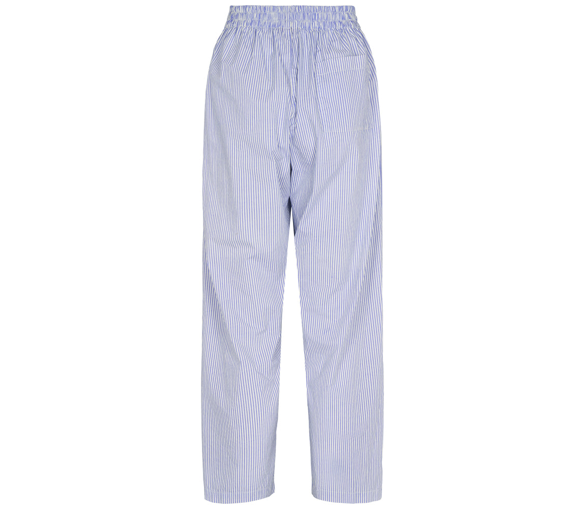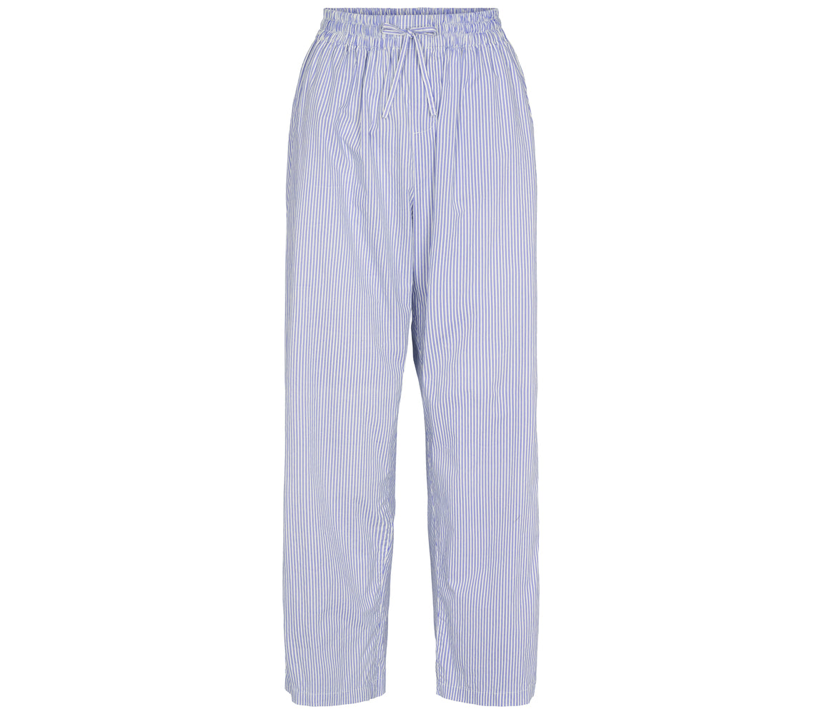 Kvinde iført sort tylbluse med sløjfe og sorte bukser