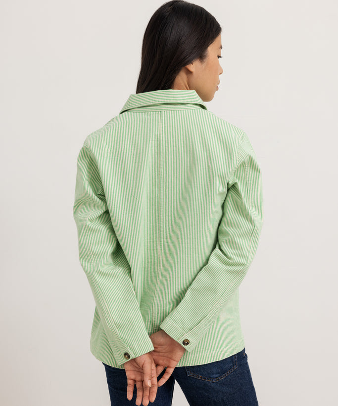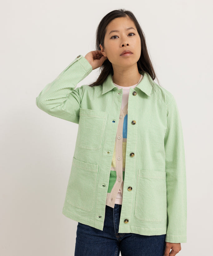 Kvinde iført blomstret skjorte med knaplukning og lange ærmer