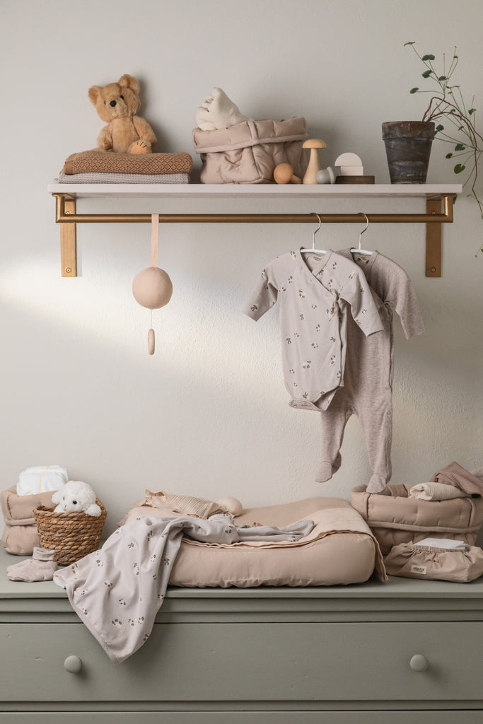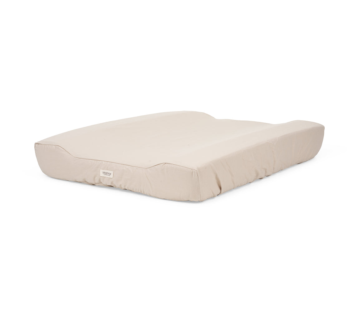Betræk til puslepude, med elastik kant i bunden, så det er nemt at tage af og på. Måler H:9cm x B:50cm x L:64cm