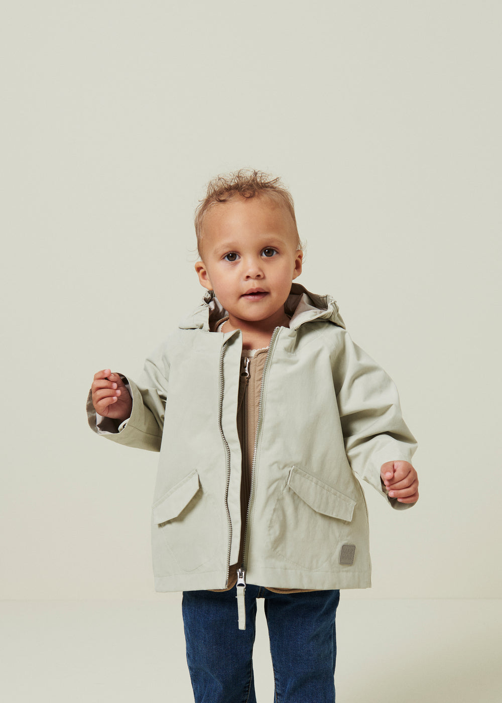 Overgangsjakke til de mindste med to lommer og hætte. Jakken har en god pasform og lukkes med en lynlås foran. Jakken er kompatibel med vores Termo Ridé jakke eller vest til de koldere dage