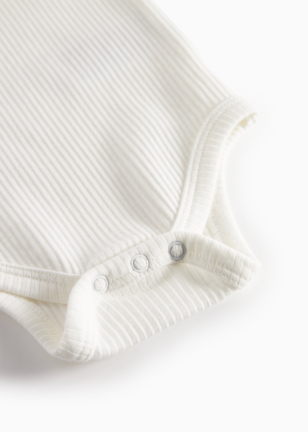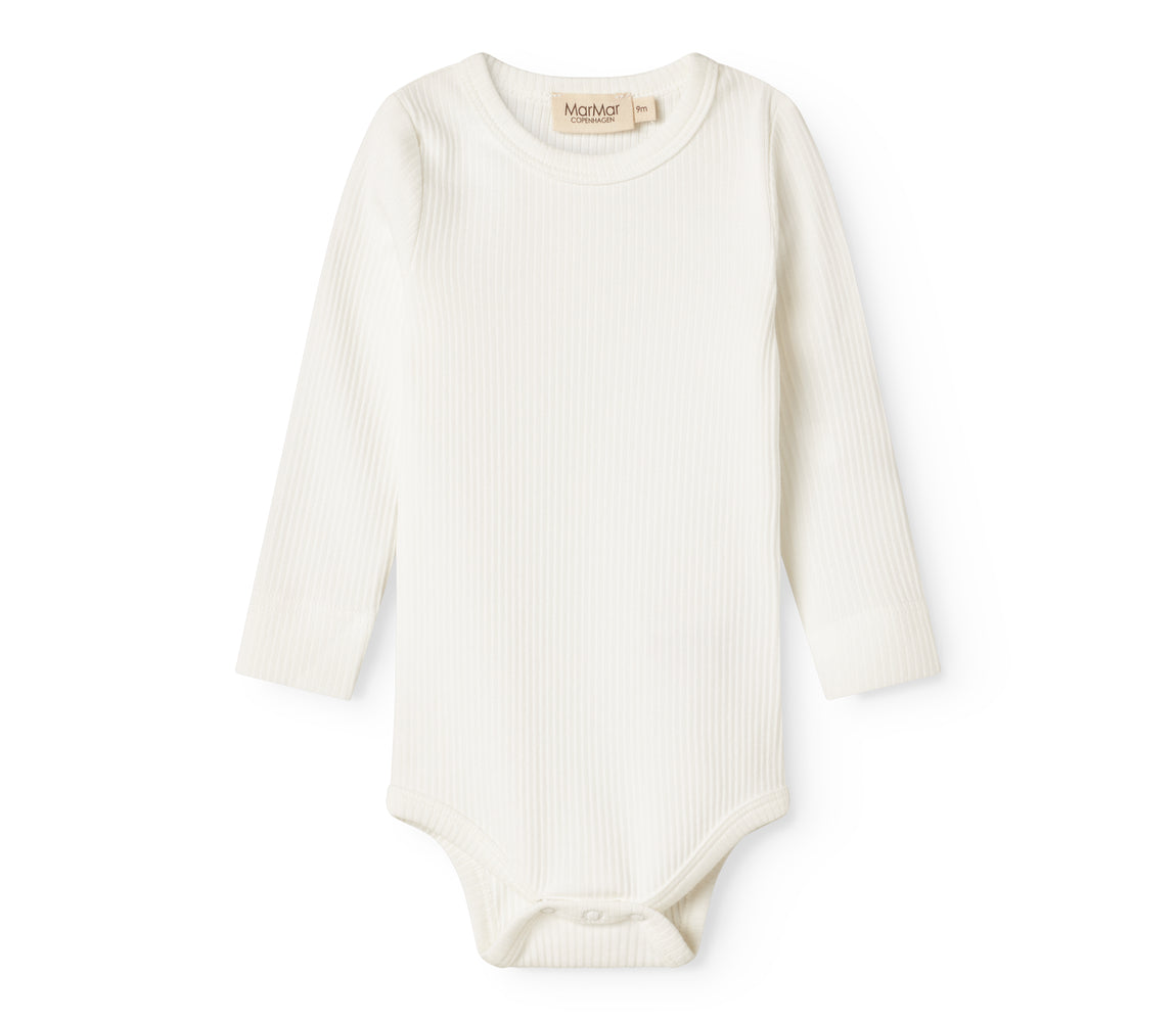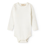 Enkel langærmet baby modal bodystocking, der bliver lukket mellem benene for nem bleskiftning.