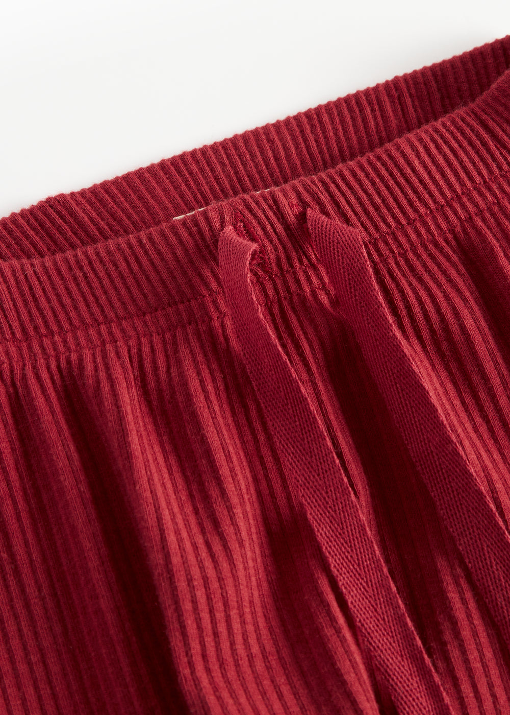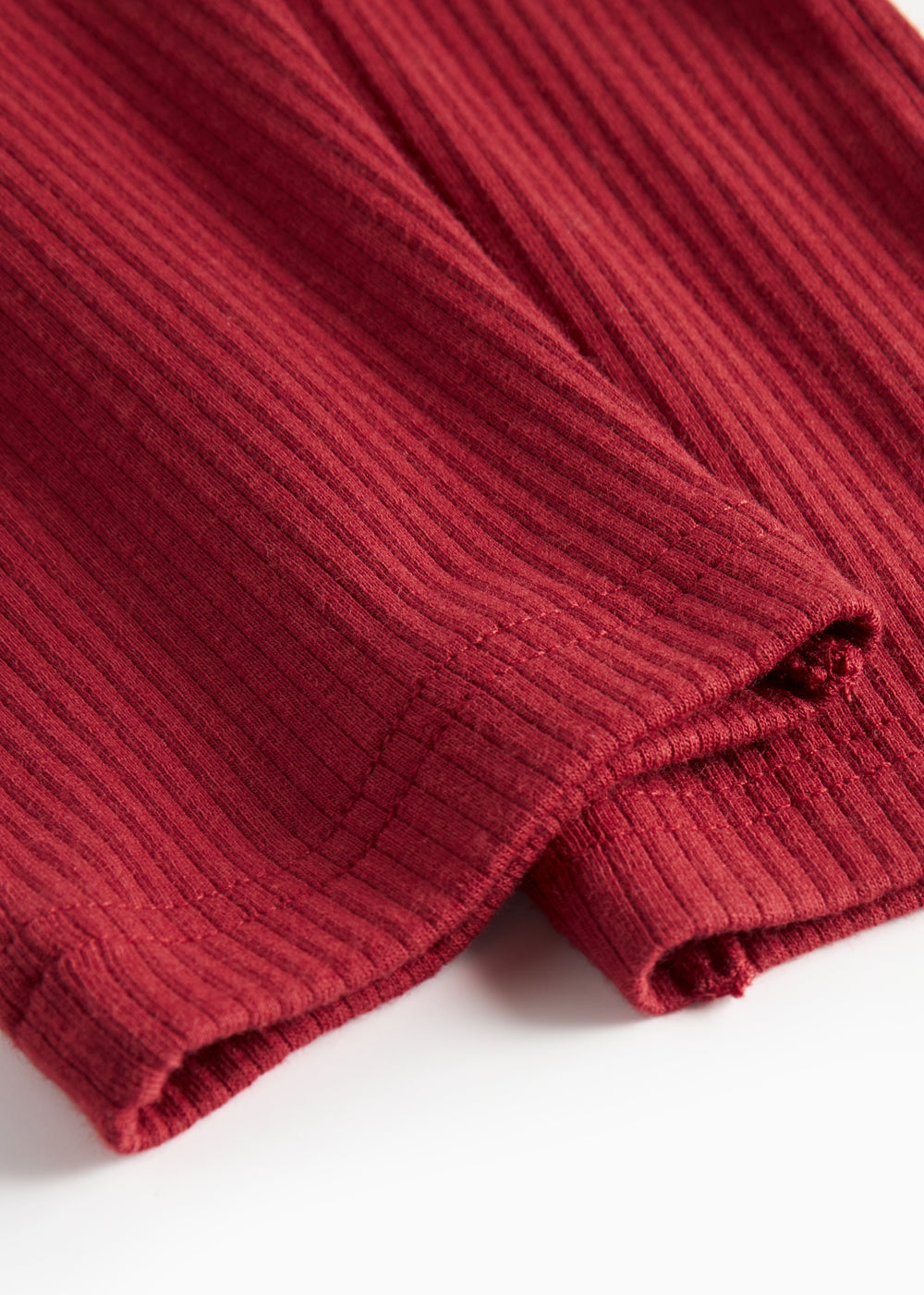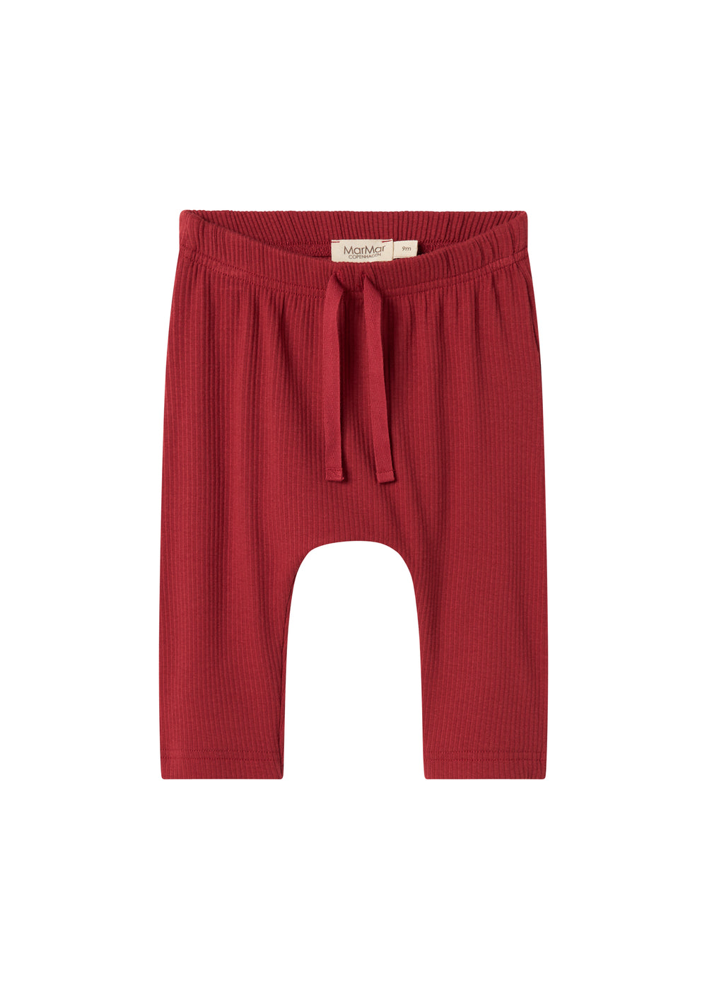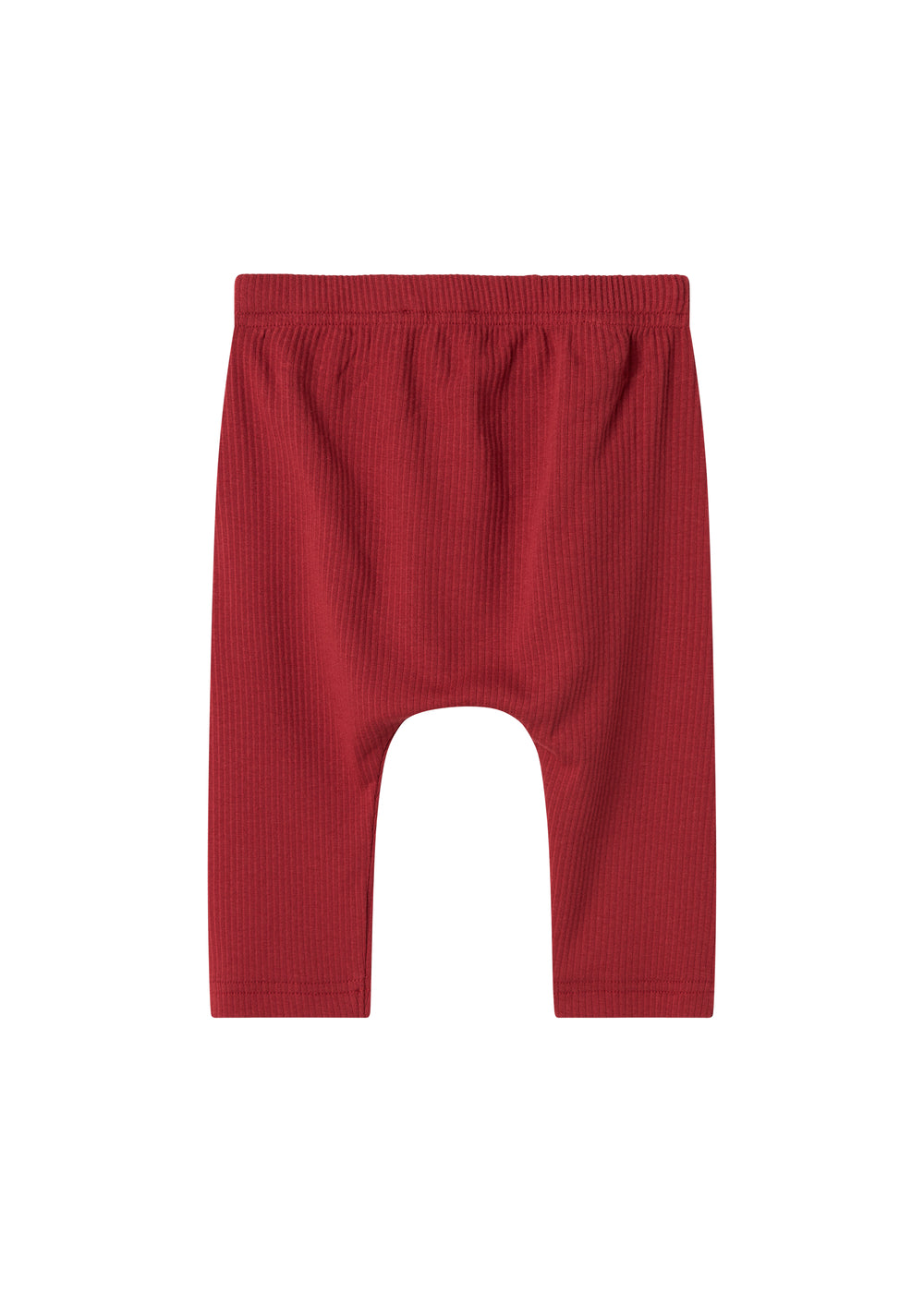 Baby bukser med bred elastik og bindebånd i taljen. Bukserne er ribstrikket, bløde, strækbare og behagelige at have på.