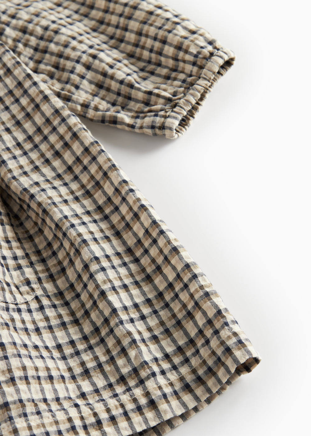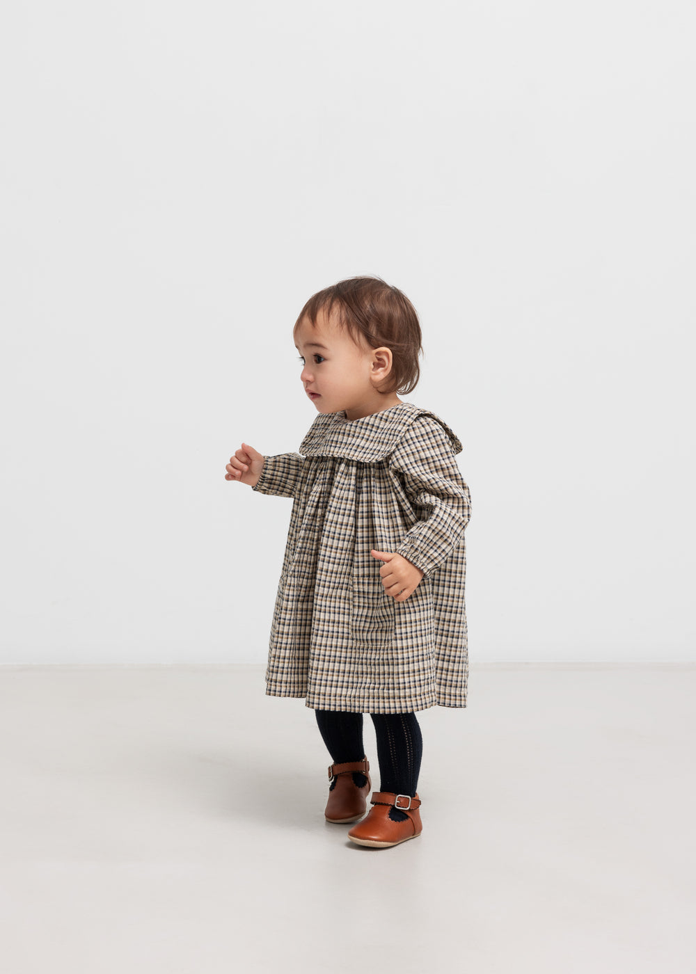 Brun ternet langærmet kjole til børn i crepet bomuld