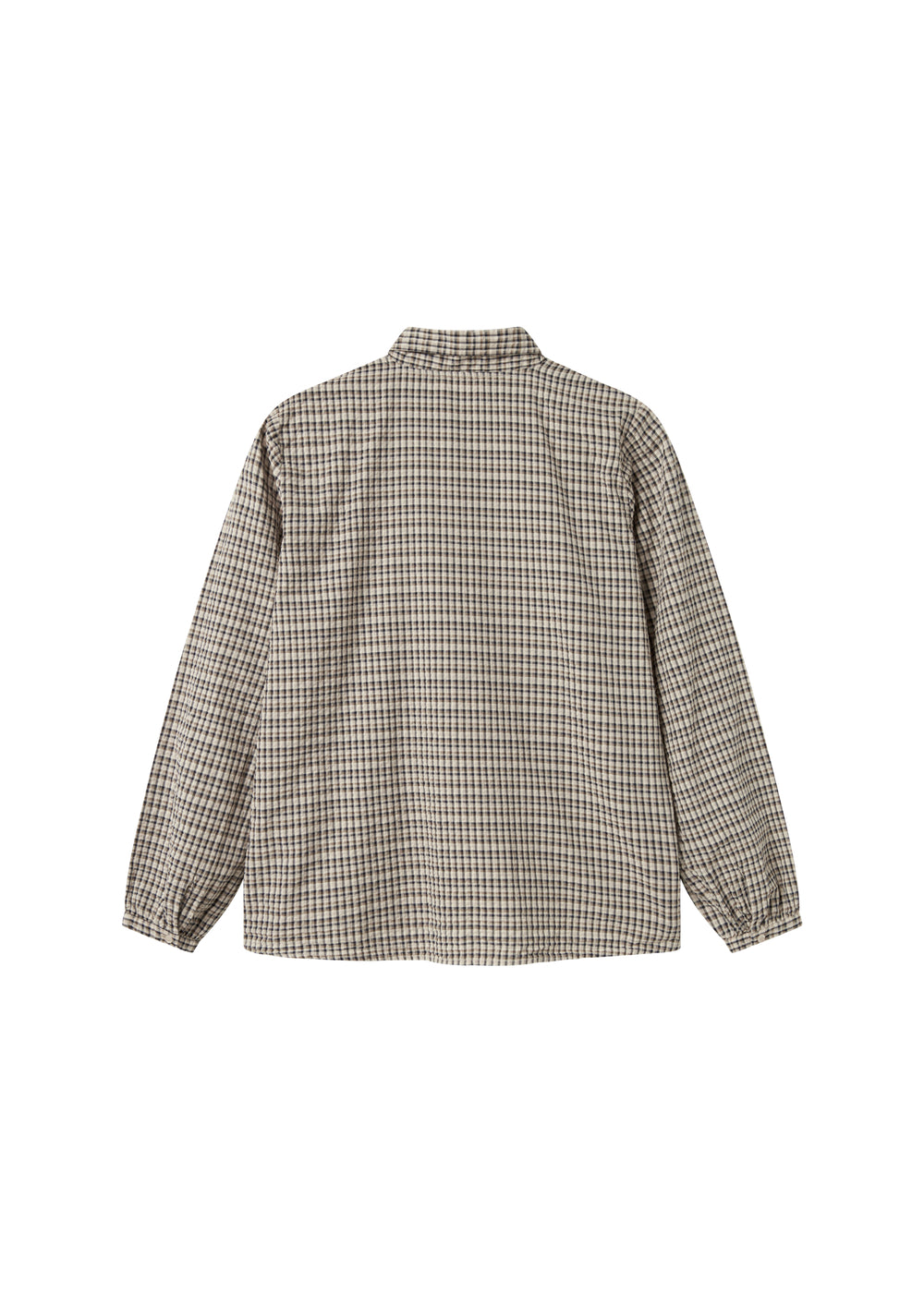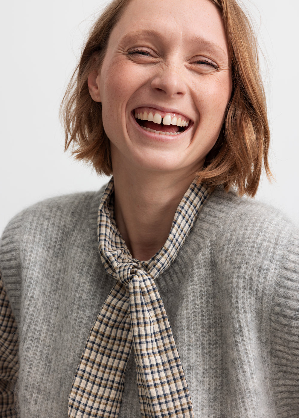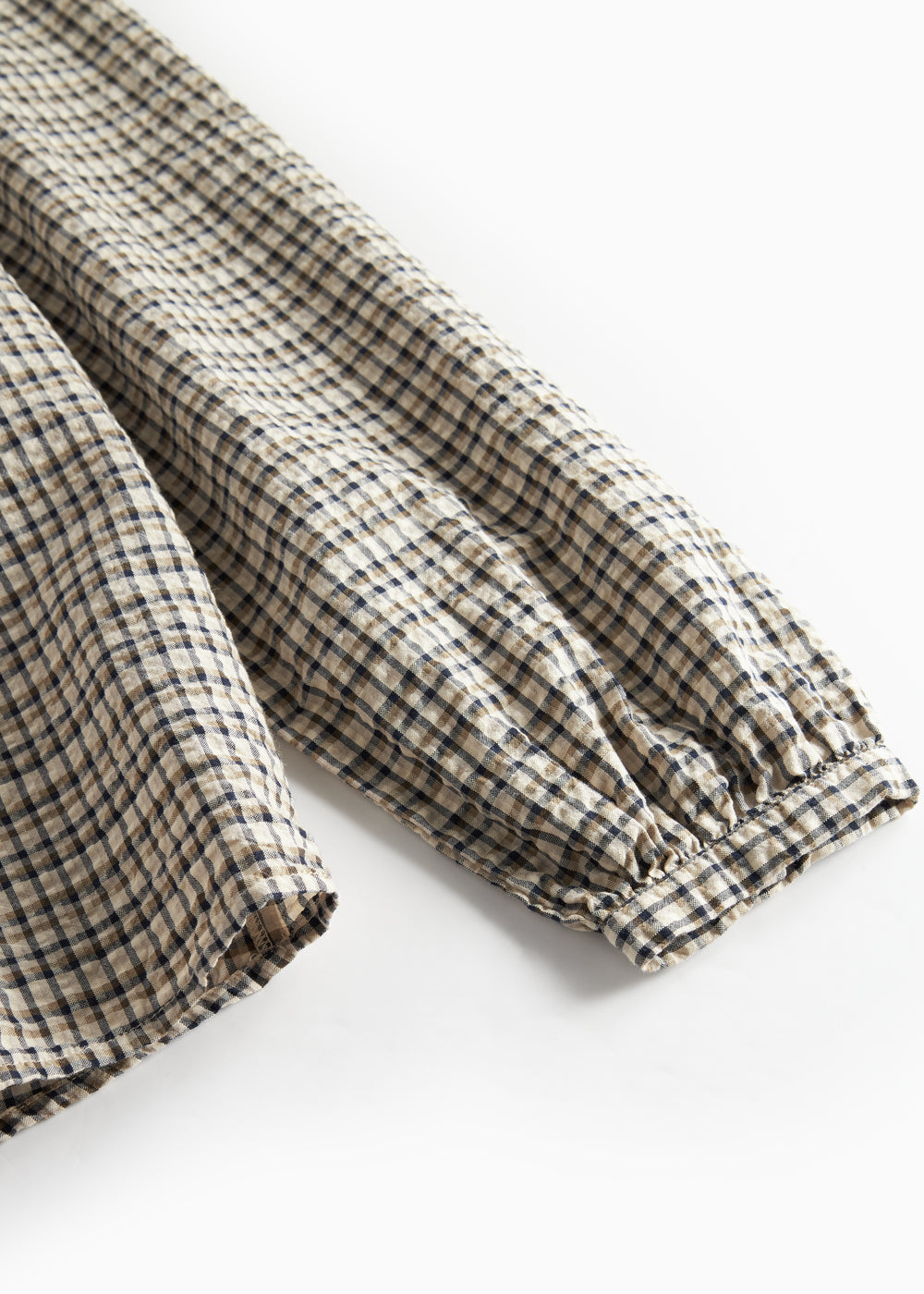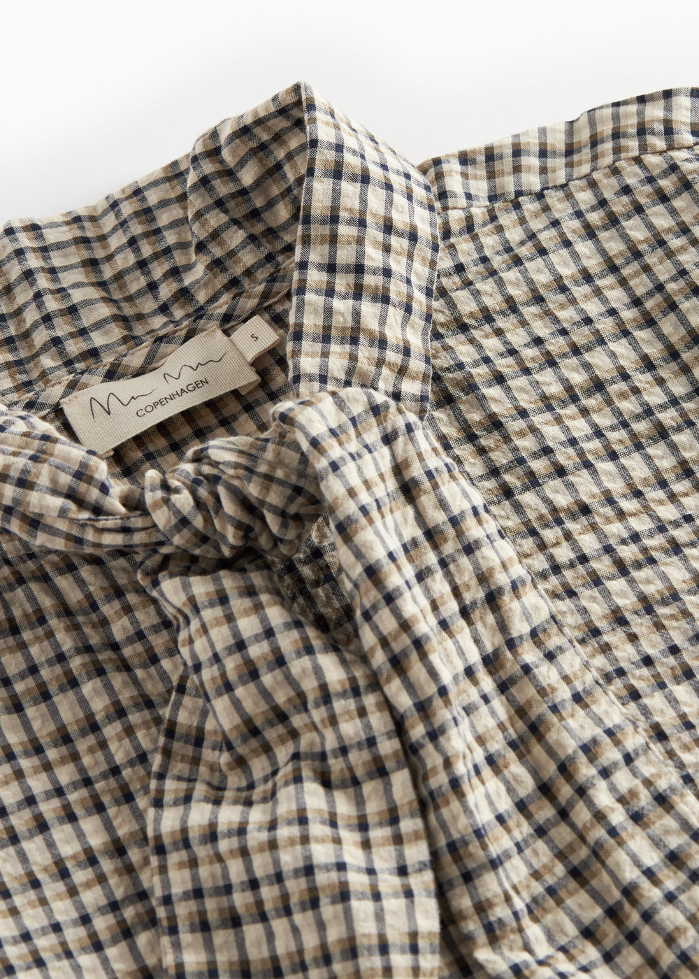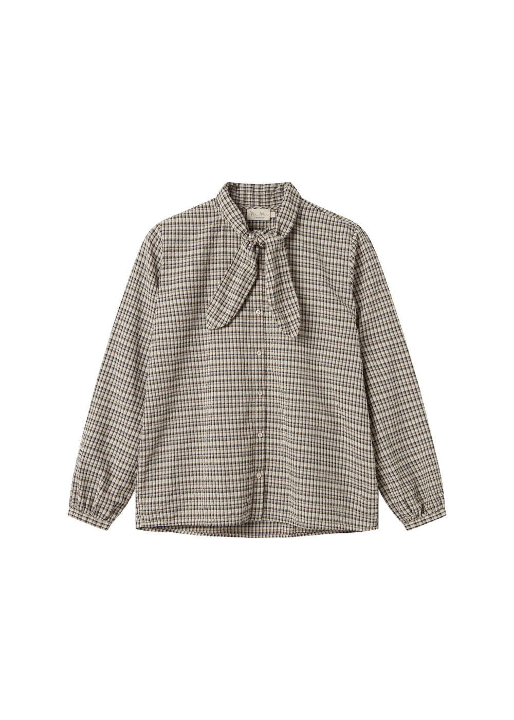 Langærmet skjorte i crepet bomuld til kvinder med knaplukning og fin hals-sløjfe foran. Skjorten har et behageligt fit.
