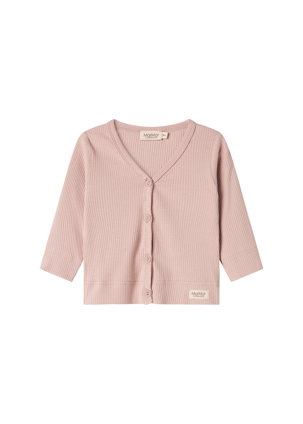 Enkel langærmet cardigan med fin V-udskæring og knapper hele vejen ned. Cardiganen er ribstrikket, blød, strækbar og behagelig at have på.