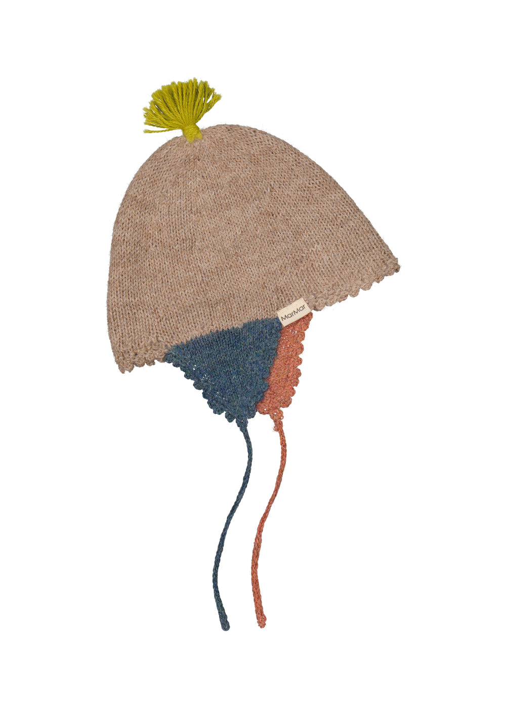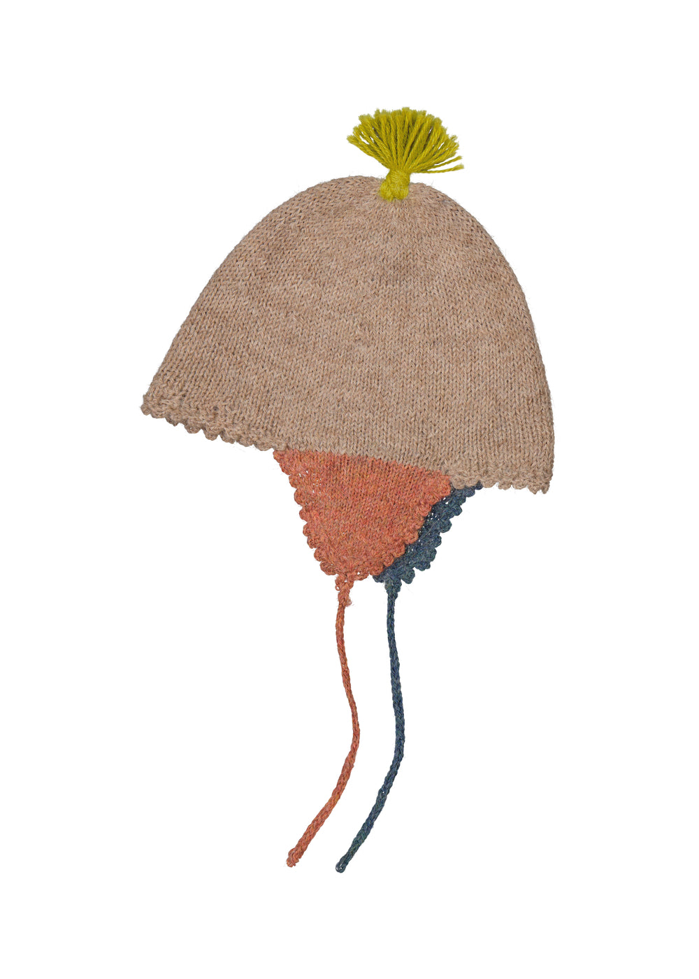 Håndstrikket alpaka hue i et smukt mønster til børn med kvast der lukkes med bindebånd. Alpaka huen er hjemmestrikket hos Aymara-kvinder - Det oprindelige folk fra den bolivianske Andes-regionhuen. Hvert stykke er derfor helt unik da det er håndlavet af forskellige kvinder. Huen er produceret i Bolivia.