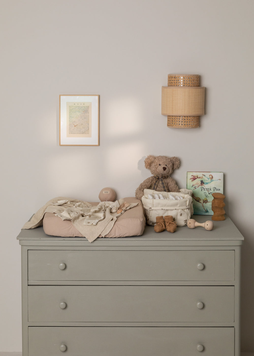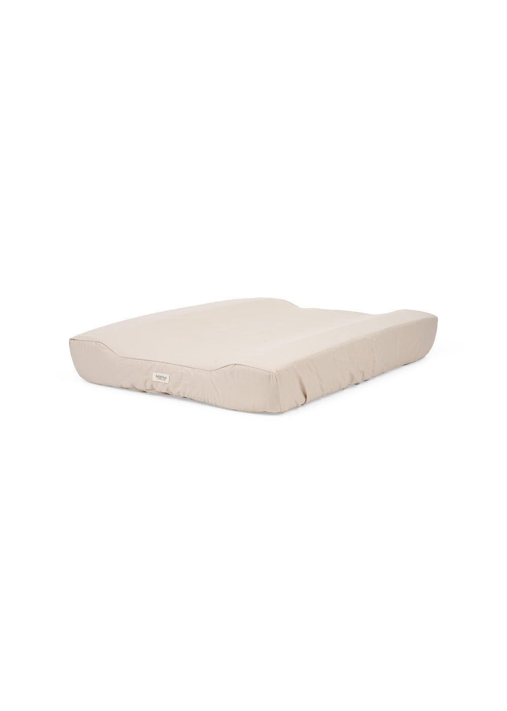 Betræk til puslepude, med elastik kant i bunden, så det er nemt at tage af og på. Måler H:9cm x B:50cm x L:64cm