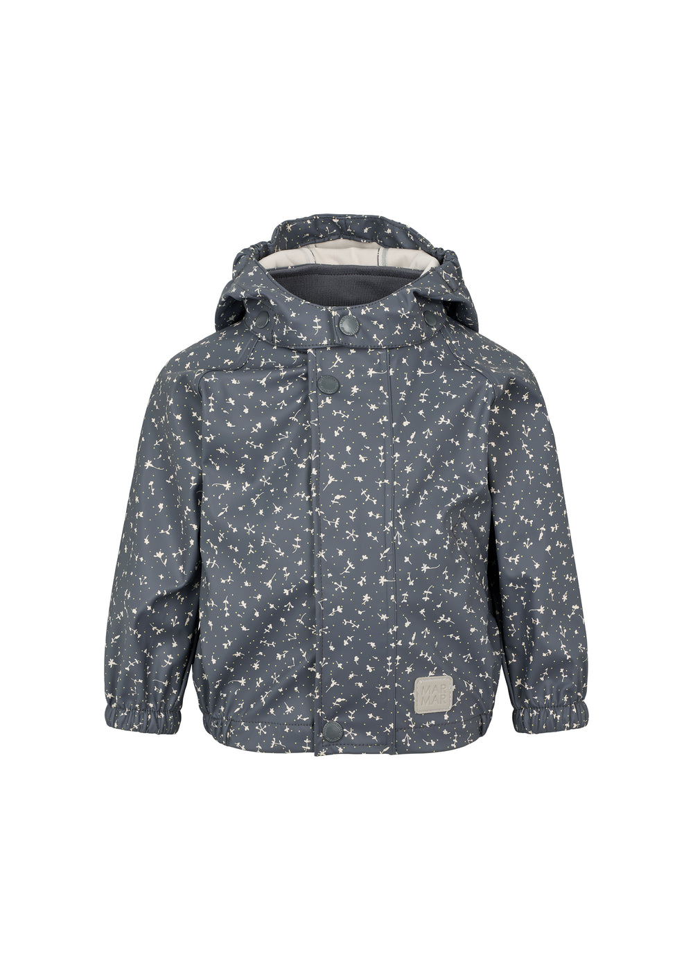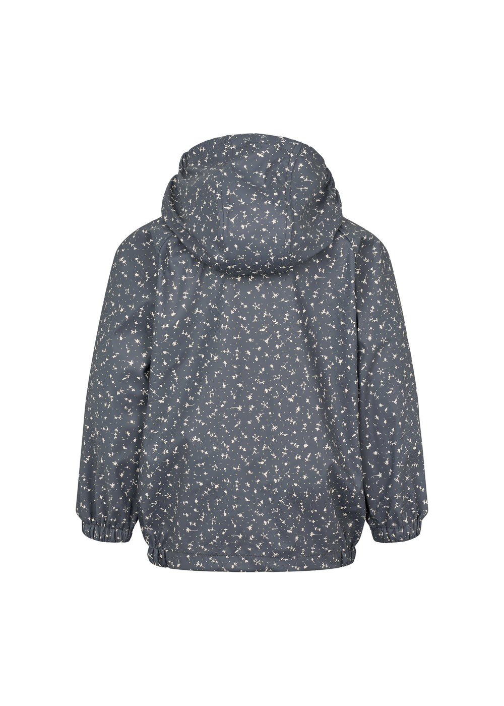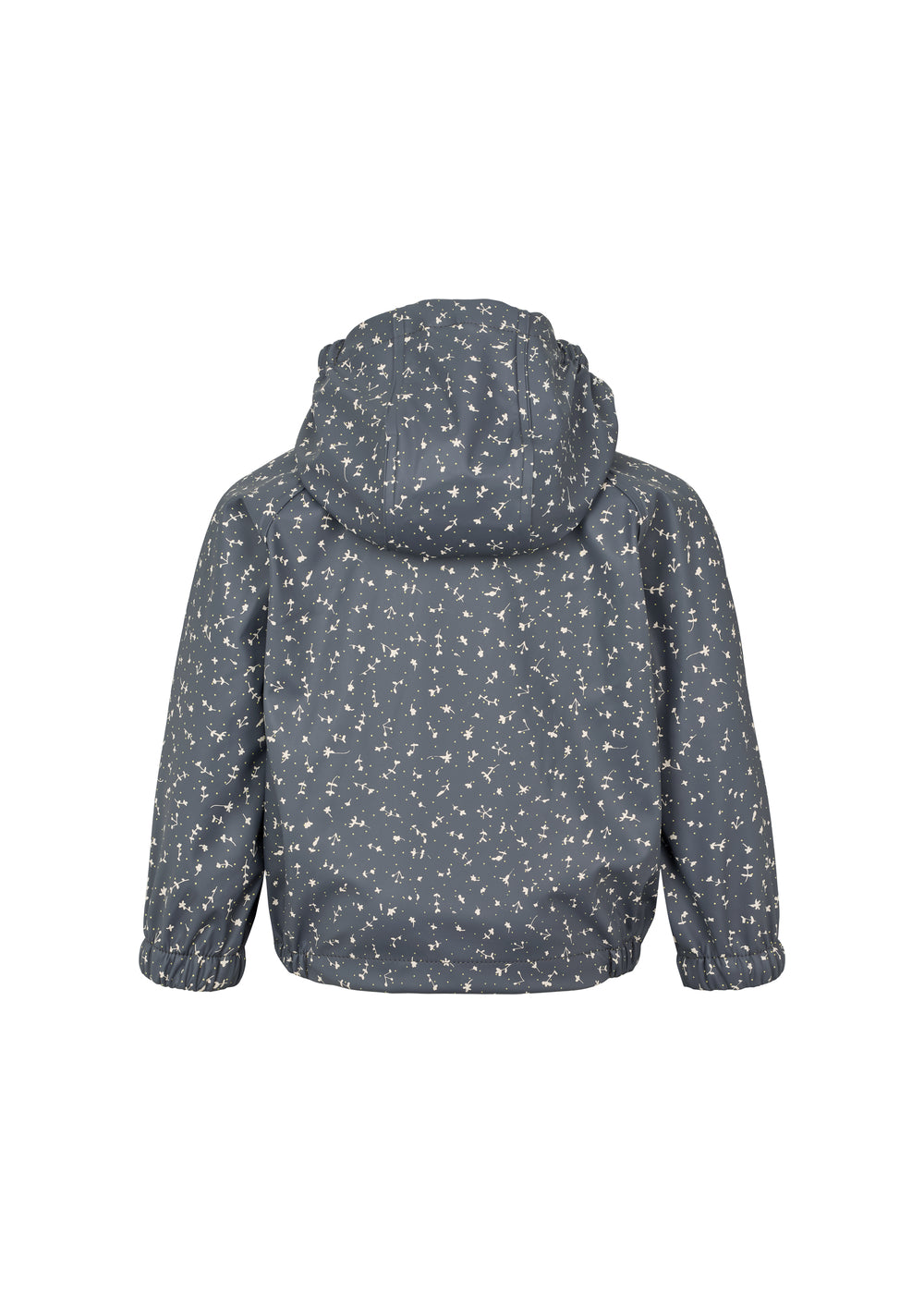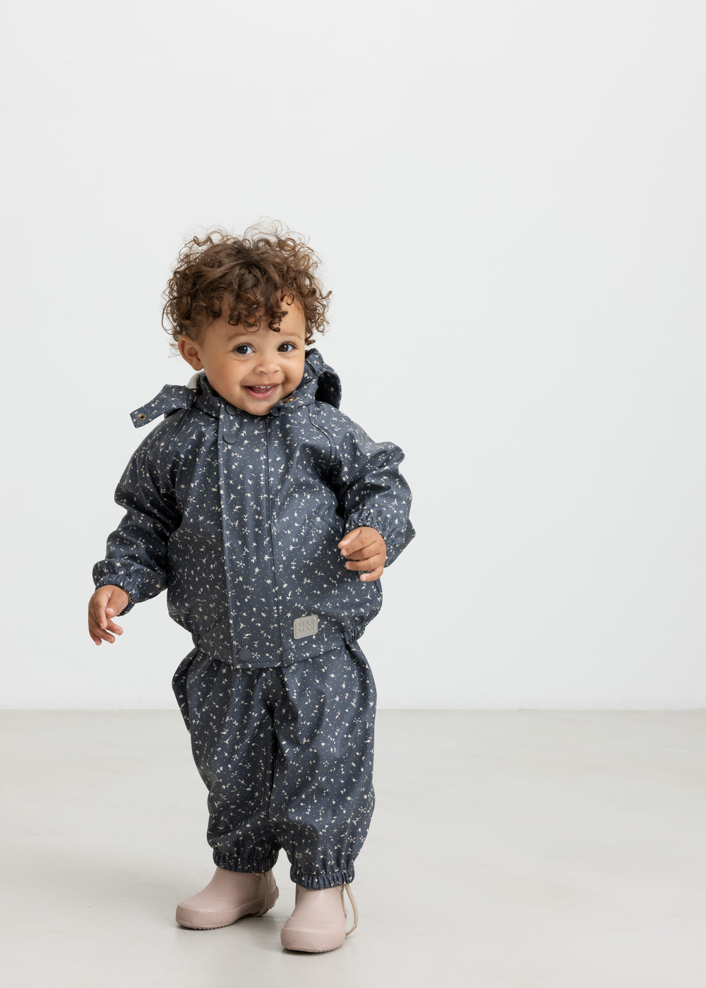 Regnsæt til de mindste. Regnbukserne har justerbare seler og har elastik i siderne for at sikre den bedste pasform. Regnbukserne har praktiske fodstropper som sørger for, at bukserne bliver siddende over støvlerne, så der ikke kommer vand ind. Jakken har en lomme foran og lukkes med lynlås og trykknapper. Jakken har en aftagelig hætte, der kan fjernes efter behov, og elastiske manchetter ved ærmerne, som sikrer en tætsiddende pasform og forhindrer vand i at trænge ind.
