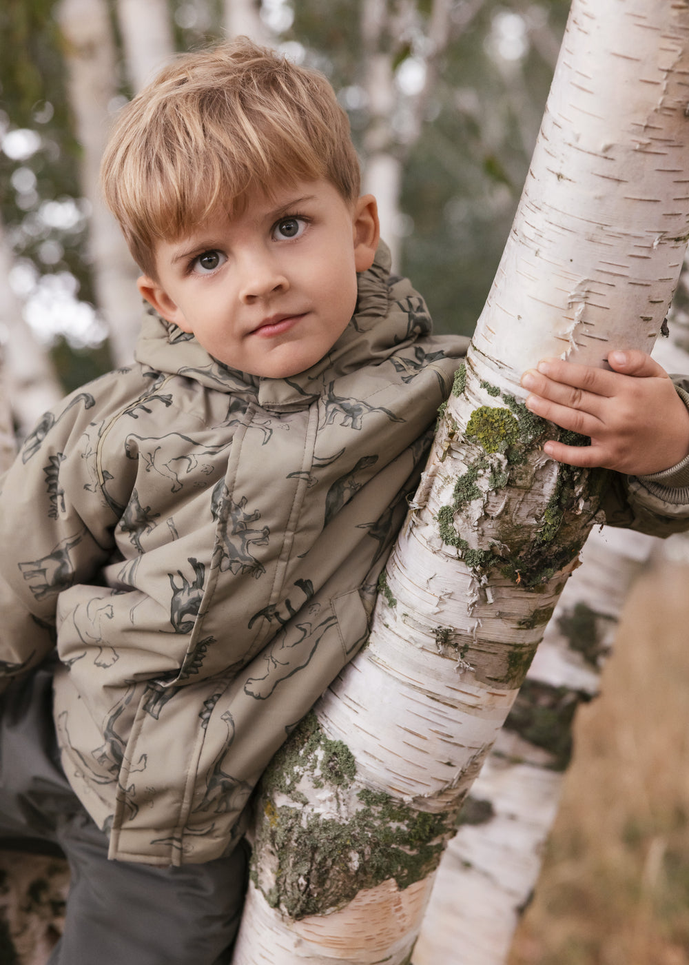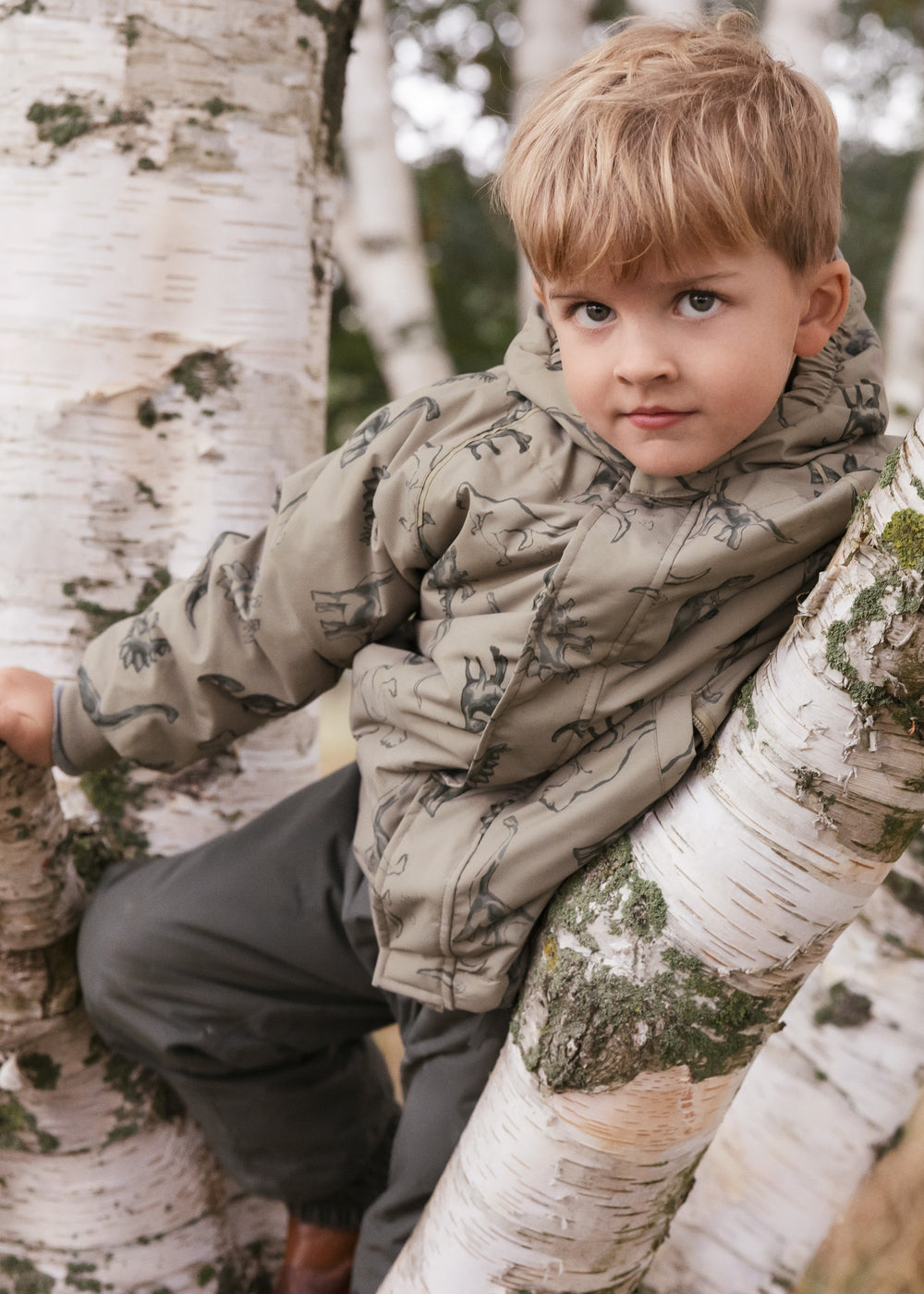 Vi bruger Thermolite som er et polyesterisoleringsmateriale. Det er let og luftigt og tillader luft at cirkulere rundt om dit barns krop. Dette regulerer barnets kropstemperatur og holder det behageligt varmt. Alle vores lommer er foret i matchende farve blød polyesterfleece.