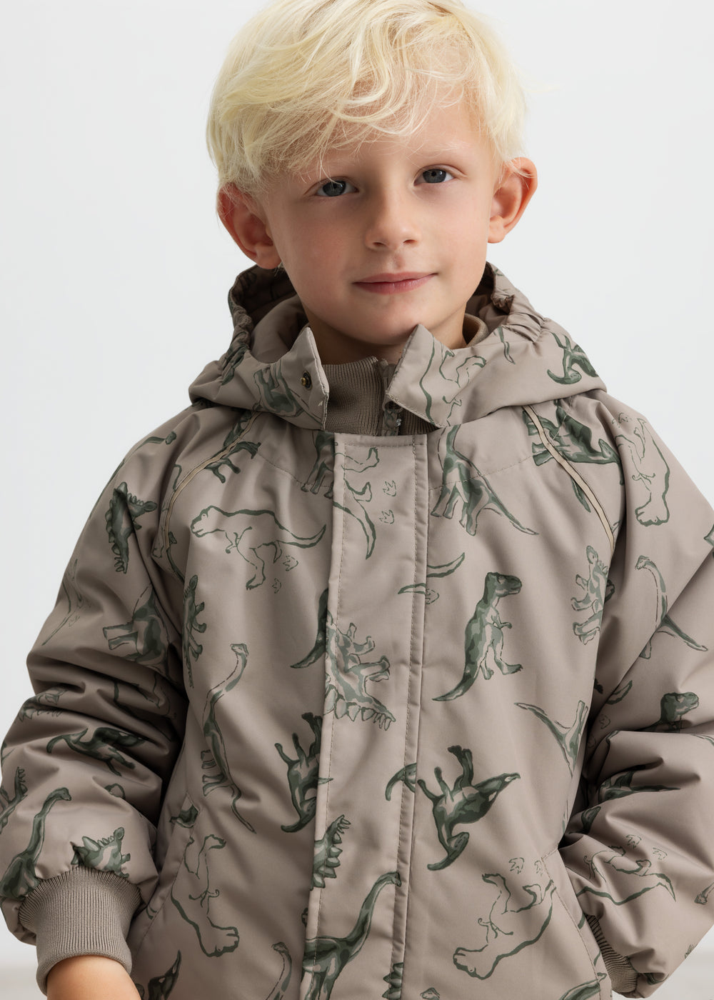 Vinterjakke til de mindste som både er varm, vind- og vandtæt. Vinterjakken føles meget let og blød på kroppen. Jakken har to lynlås lommer, lukkes med lynlås og trykknapper foran samt en aftagelig hætte. Jakken er perfekt vinterovertøj i slidstærkt materiale og med thermolite isolering, der sikrer en varm og tempereret kropstemperatur.