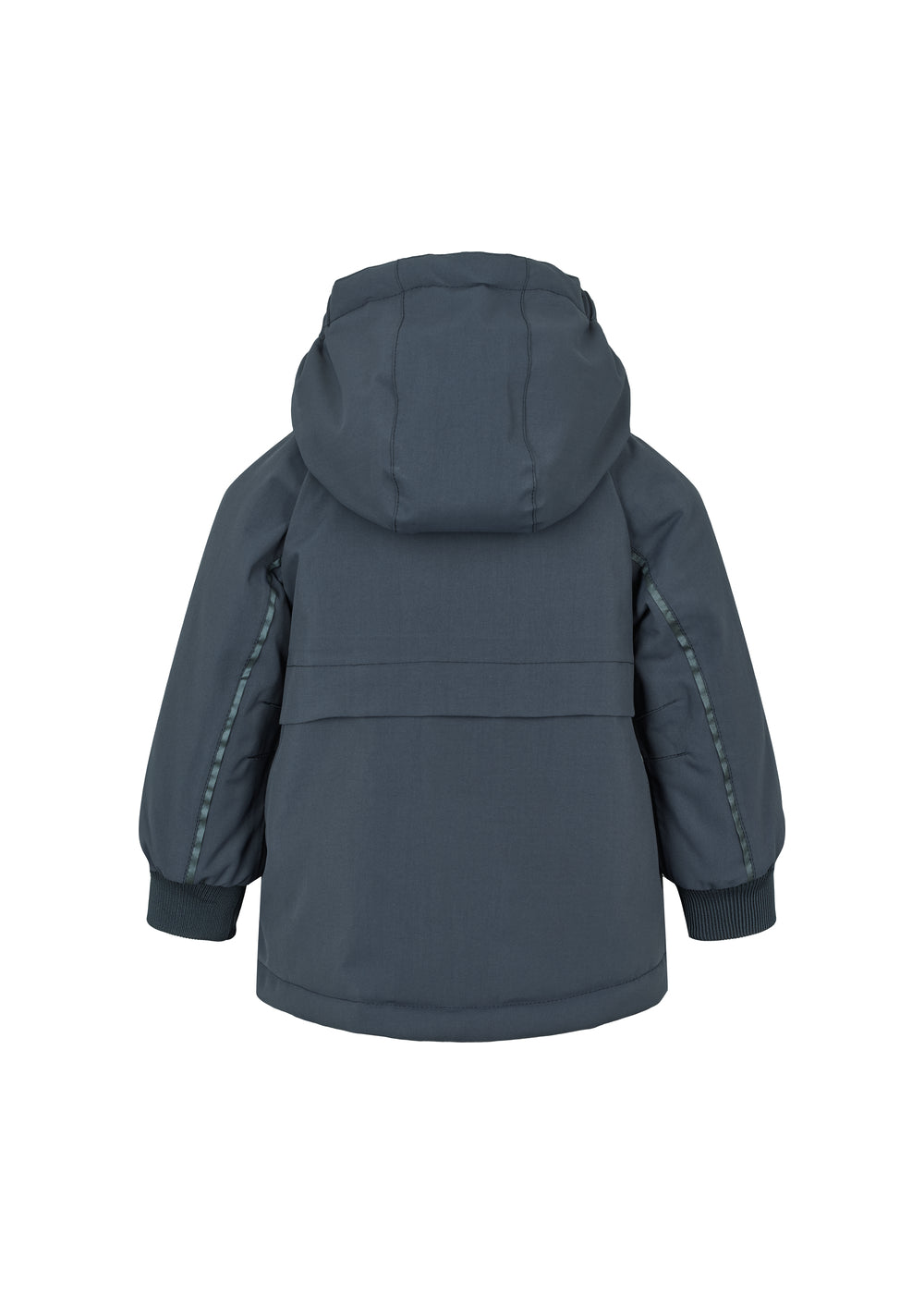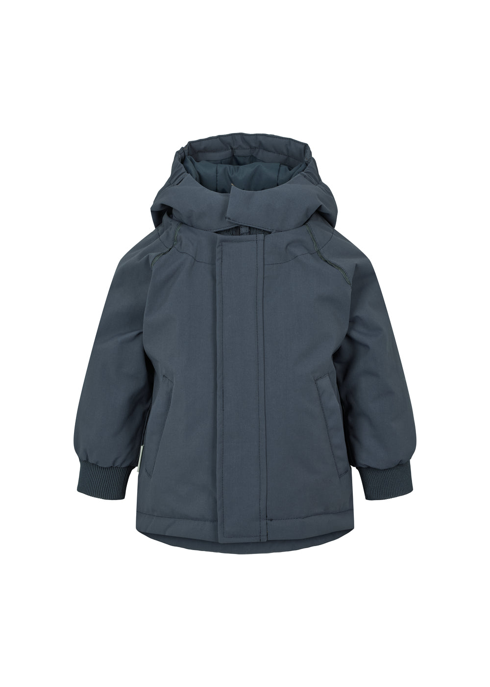 Vinterjakke til de mindste som både er varm, vind- og vandtæt. Vinterjakken føles meget let og blød på kroppen. Jakken har to lynlås lommer, lukkes med lynlås og trykknapper foran samt en aftagelig hætte. Jakken er perfekt vinterovertøj i slidstærkt materiale og med thermolite isolering, der sikrer en varm og tempereret kropstemperatur.