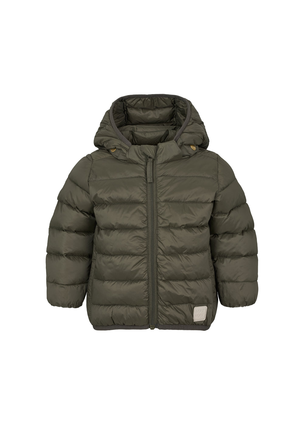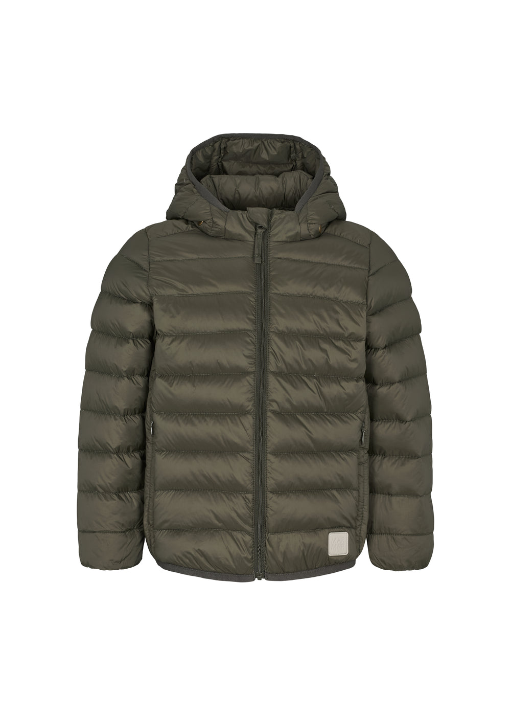 Mørkegrøn vatteret jakke til børn med hætte og lynlås