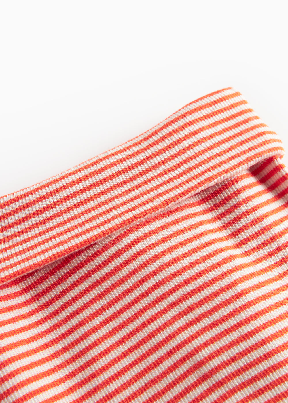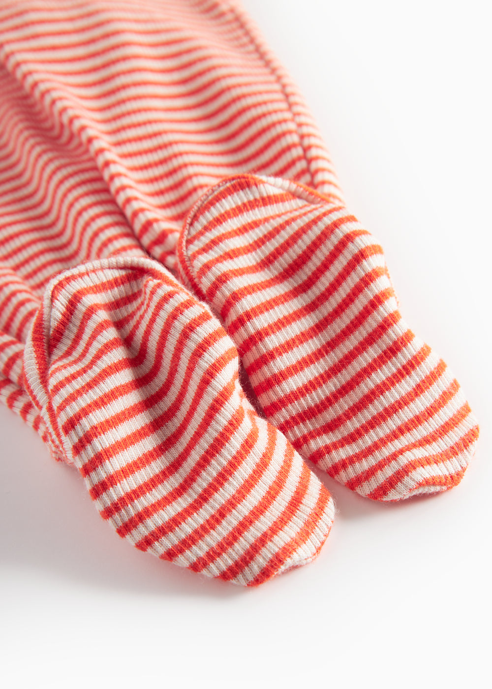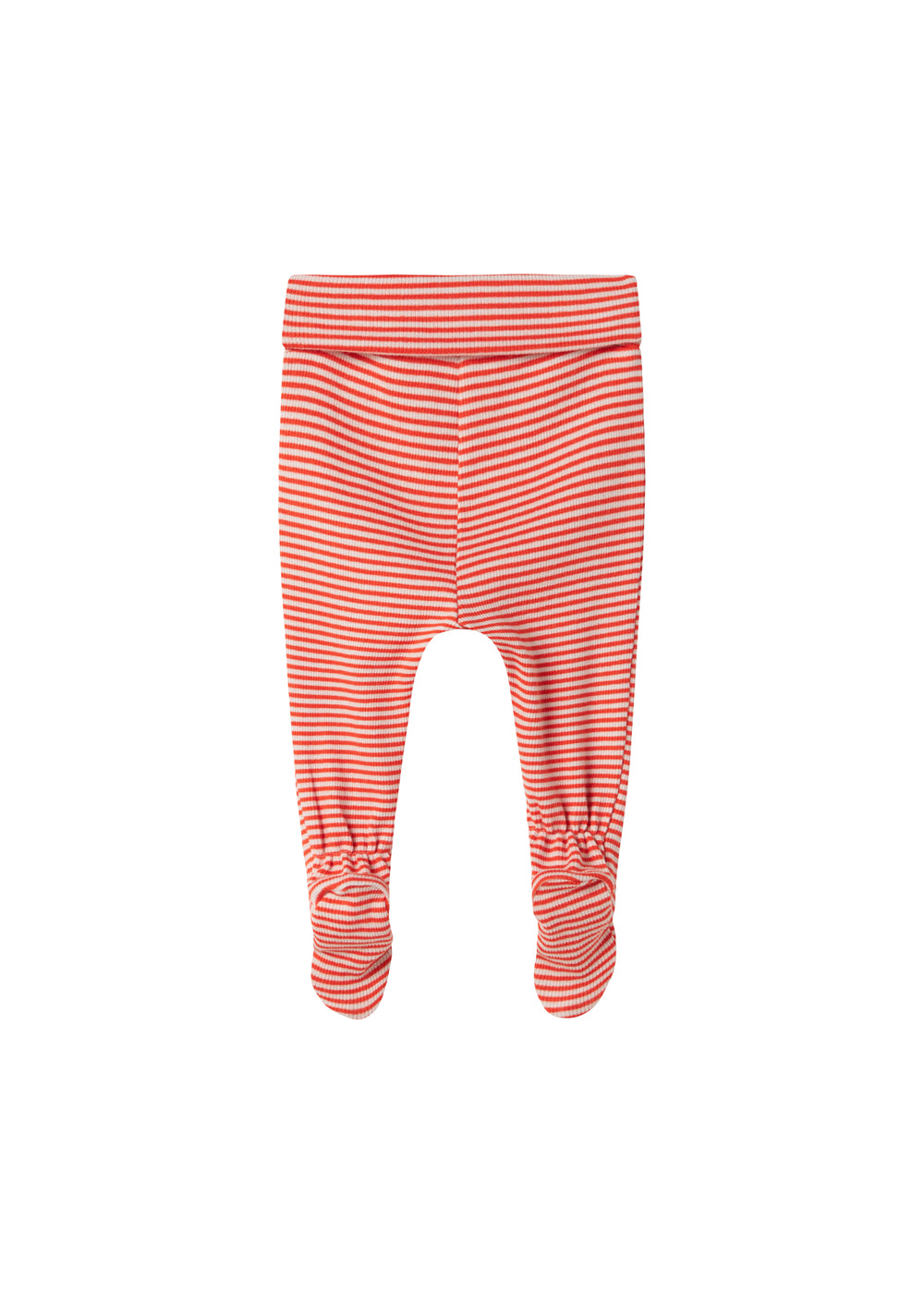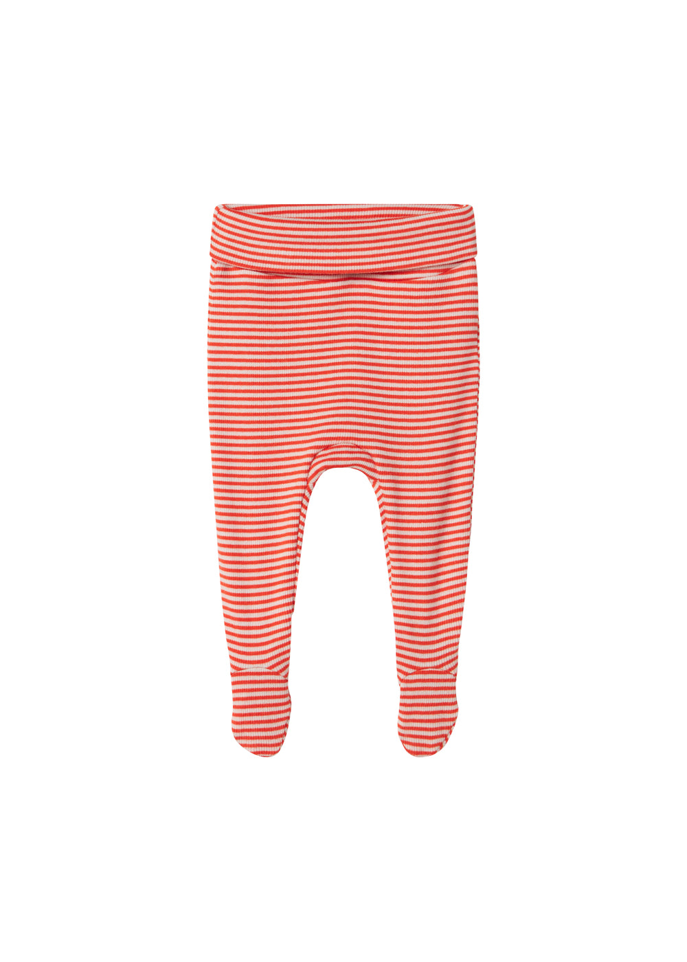 Behagelige bukser med fødder til nyfødte med fine striber. Bukserne er både bløde, holder form og farve og har elastan i sig som gør dem strækbar og behagelig at have på.