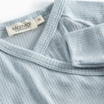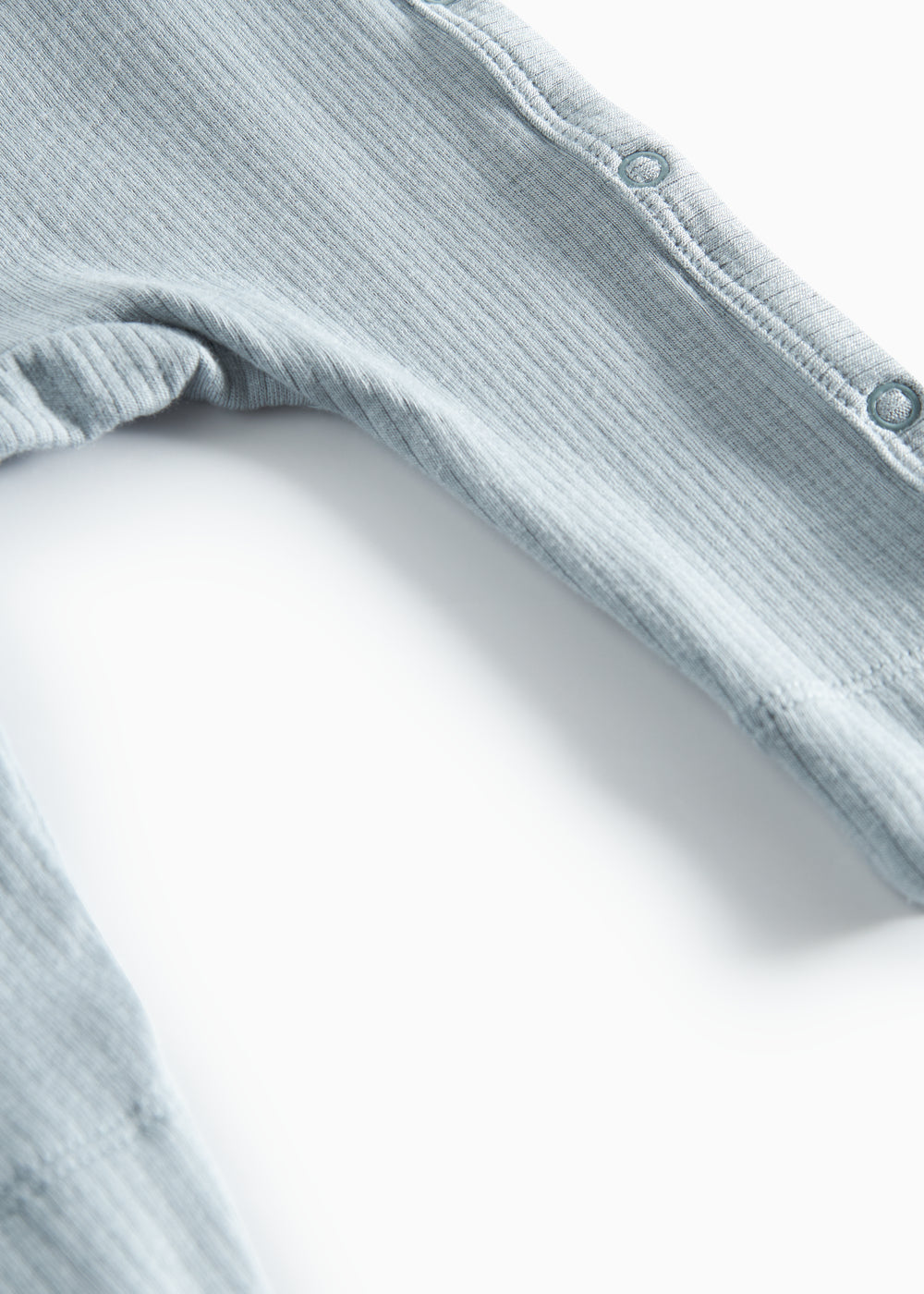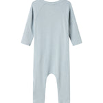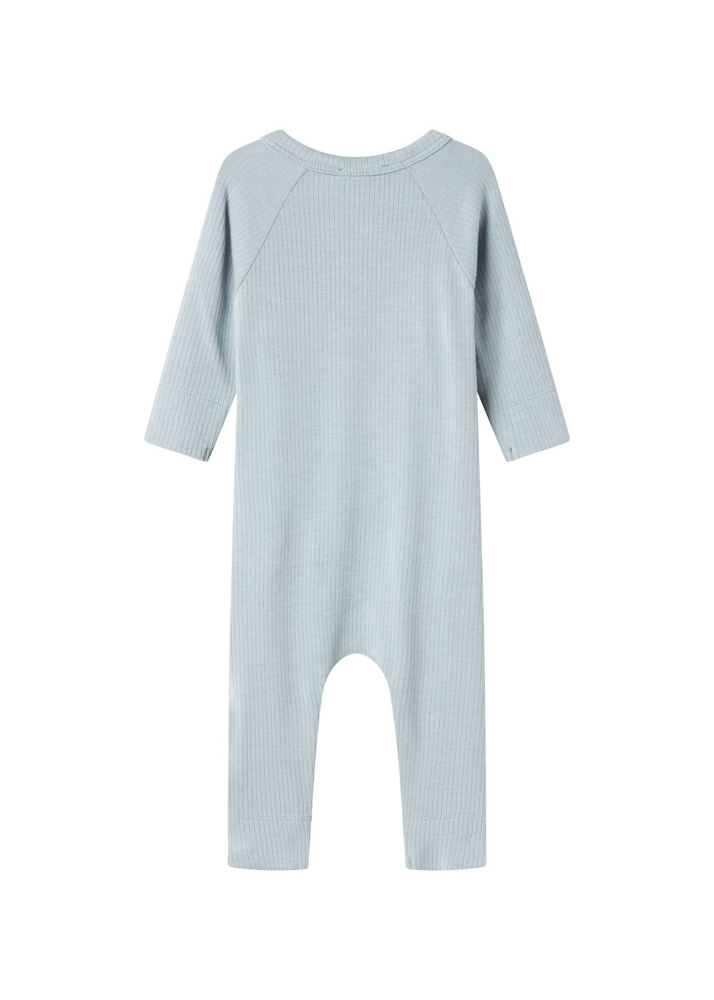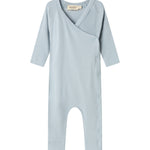 Langærmet heldragt med slå-om-lukning til nyfødte. Heldragten lukkes med trykknapper fra hals og ned langs det ene ben. Heldragten er utrolig blød, meget strækbar og behagelig at have på.