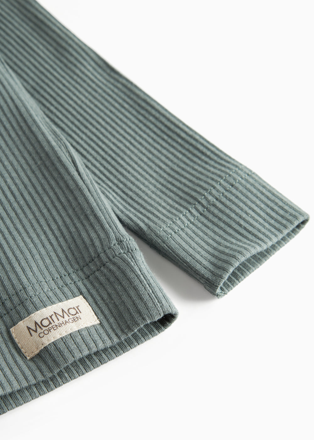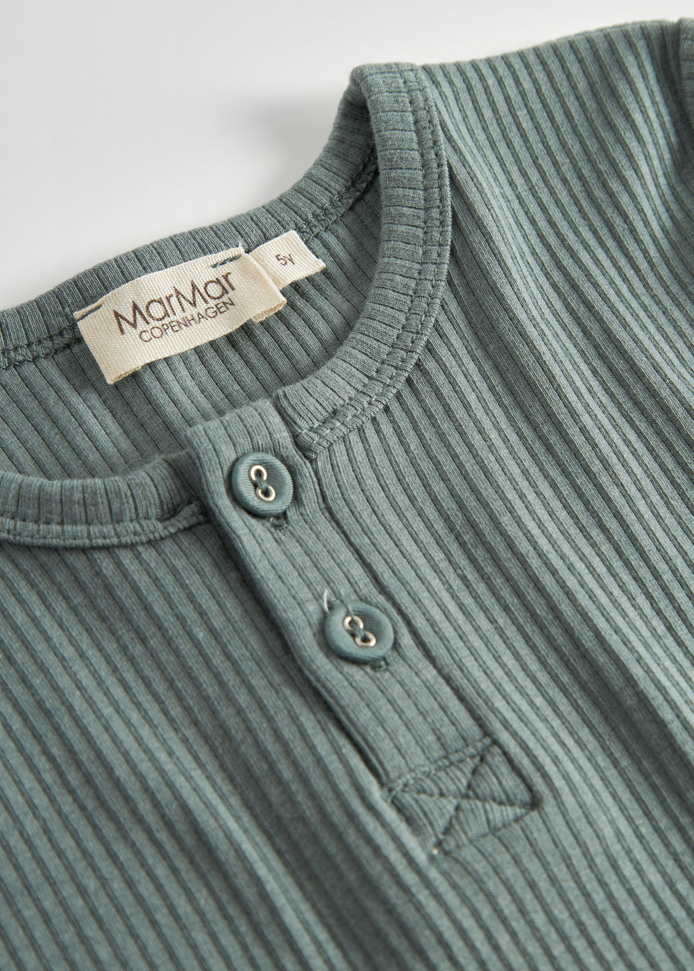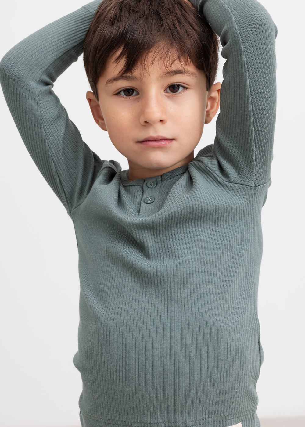 Grøn ribstrikket langærmet t-shirt med knapper til børn