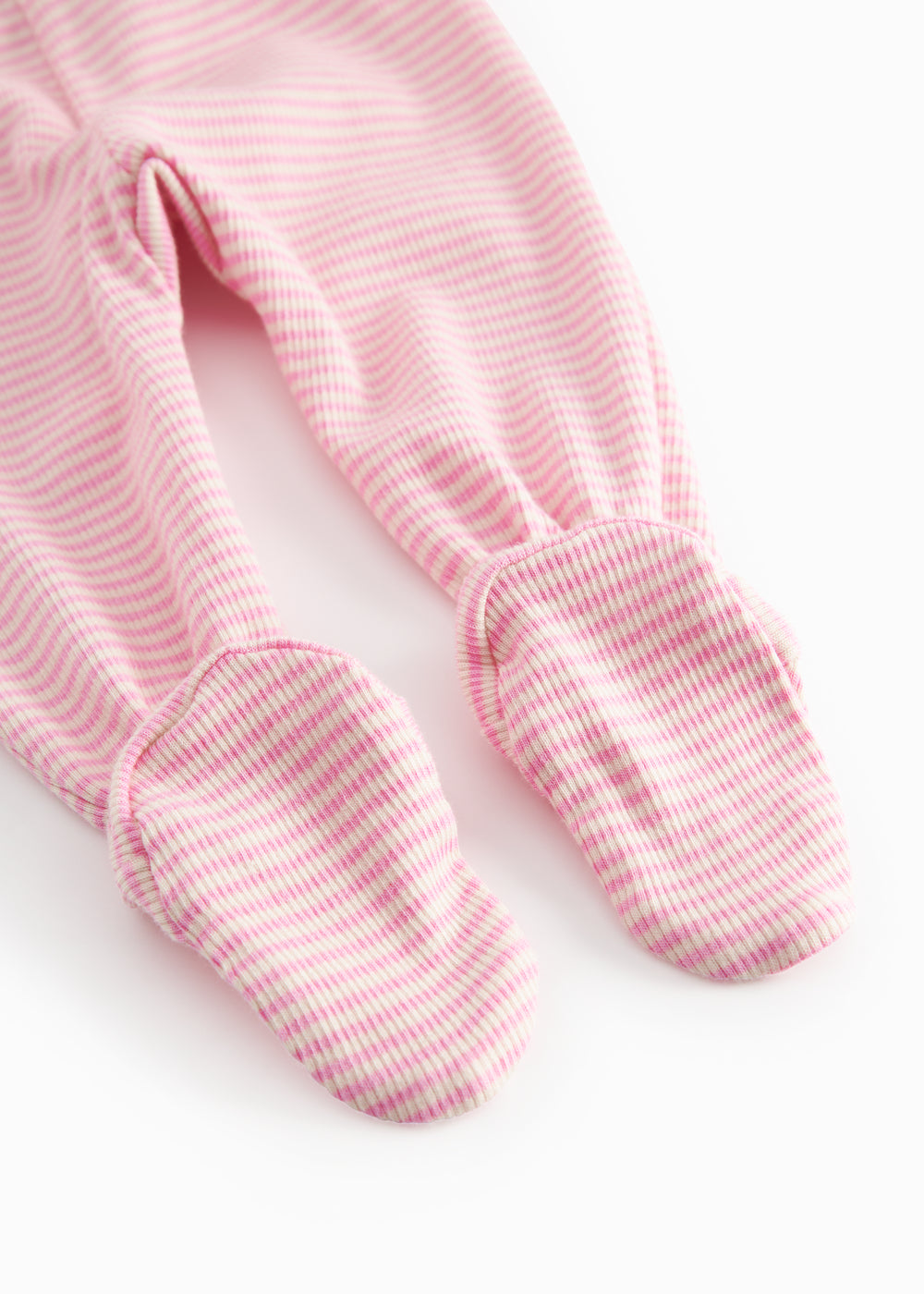 Behagelige bukser med fødder til de nyfødte med fine striber. Bukserne er både bløde, strækbare og behagelige at have på.
