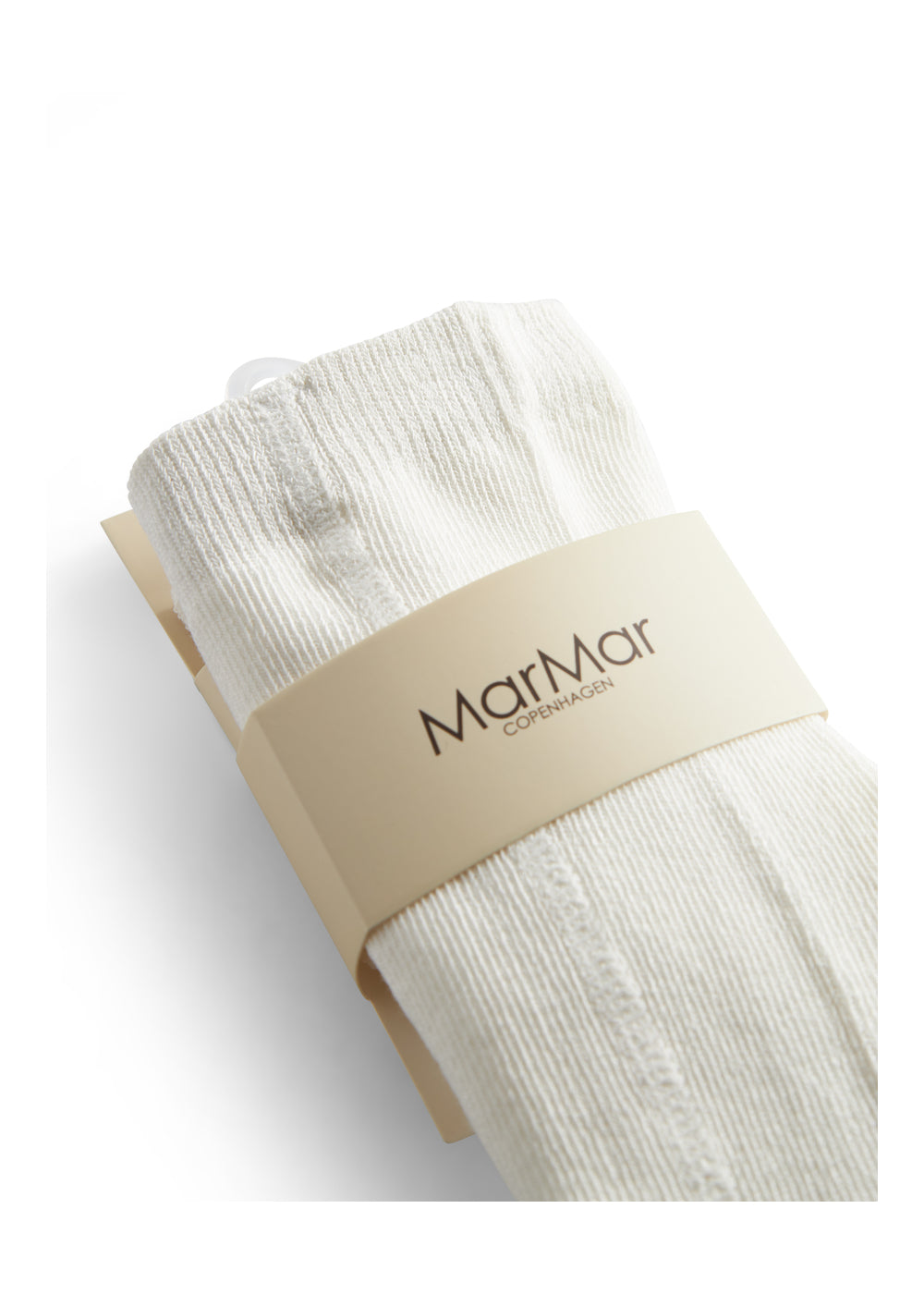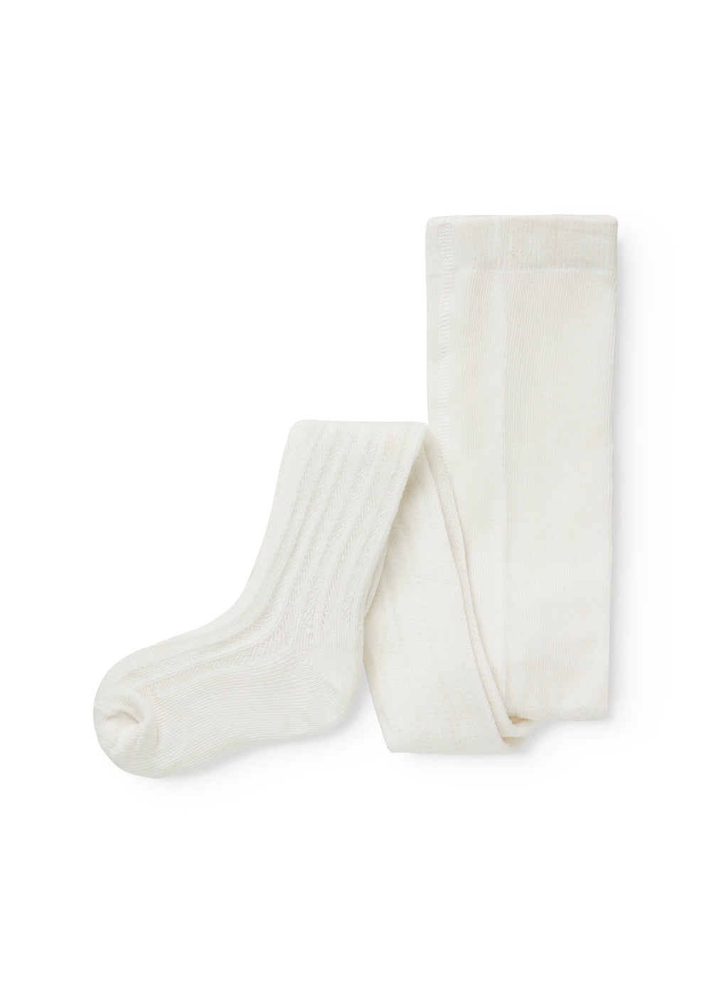 Ribstrikkede strømpebukser til små børn i cremefarvet bomuld