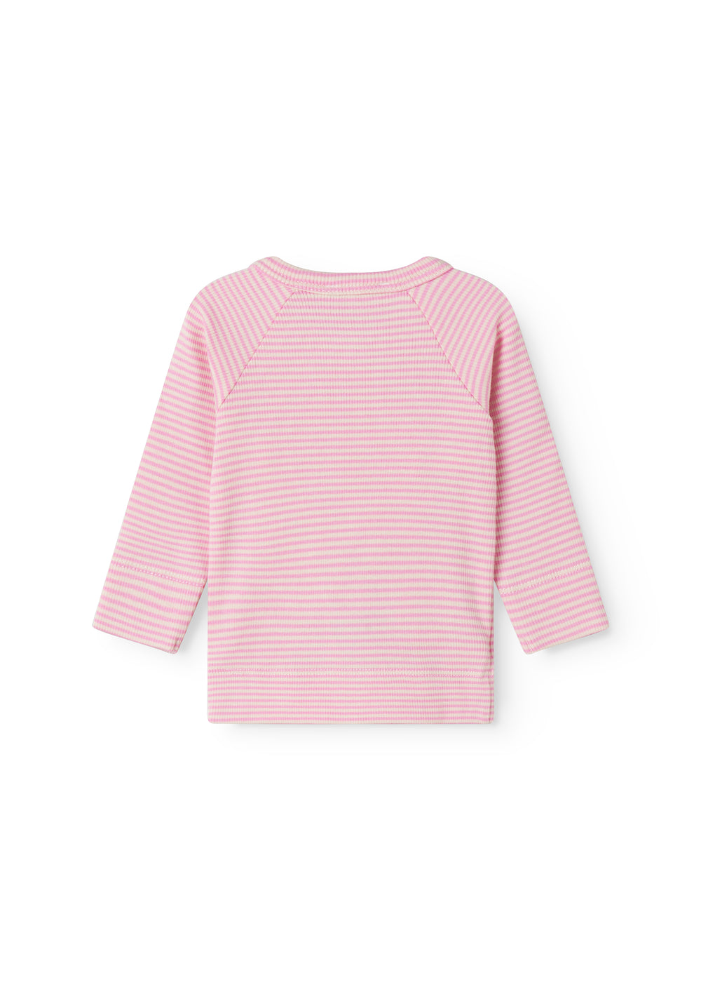Langærmet bluse med fine striber og praktisk slå-om-lukning, der lukkes med små diskrete trykknapper hele vejen ned. Blusen er både blød, strækbar og behagelig at have på.