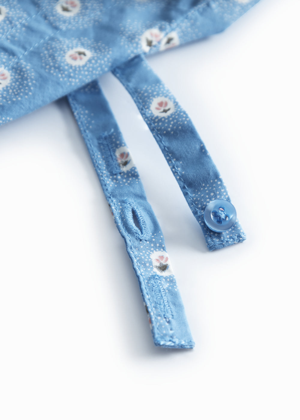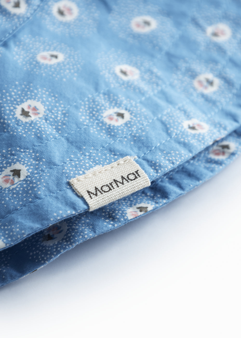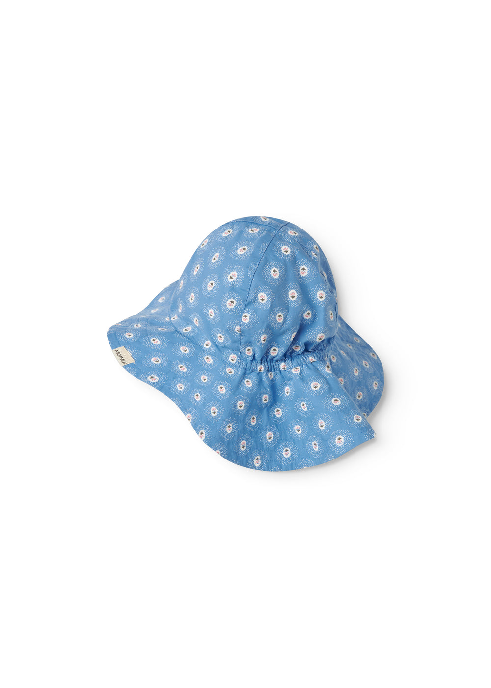 Sommerhat med skygge og elastik-rem under hagen der lukkes med knap i flere længder. Sommerhatten er i en let og crispy bomuldskvalitet, hvilket gør den behagelig at have på.