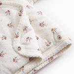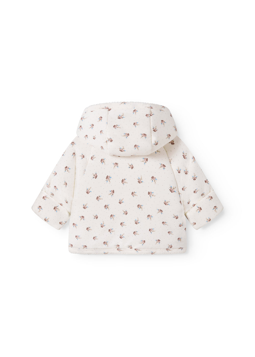 Varm vatteret jakke til de mindste med hætte og knap slå-om-lukning. Jakken fra 0M-9M har smart ombuk mulighed på ærmerne for at holde den lille varm. Jakken har et fint print og er både blød, strækbar og behagelig at have på.