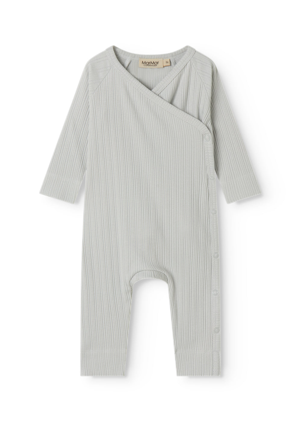 Langærmet pointelle heldragt med slå-om-lukning til nyfødte. Heldragten lukkes med trykknapper fra hals og ned langs det ene ben. Heldragten er både blød, strækbar og behagelig at have på.