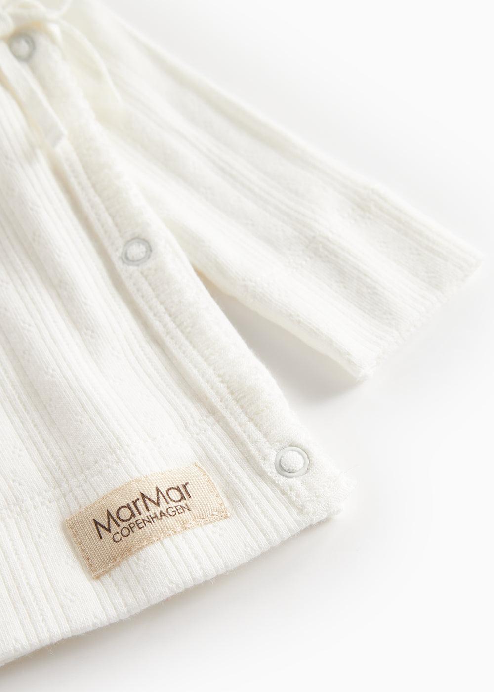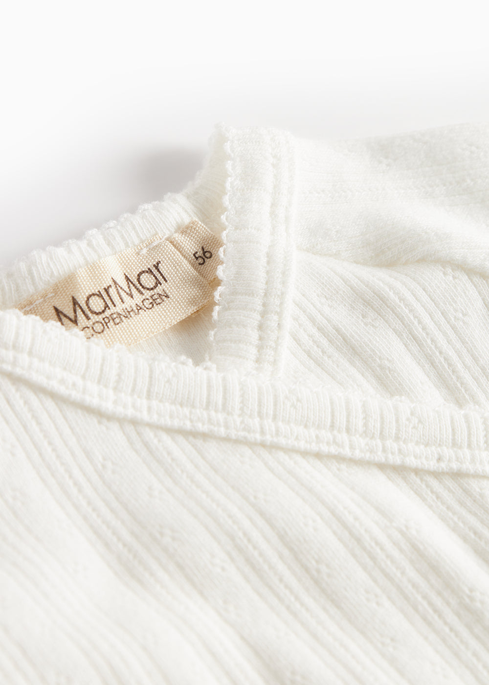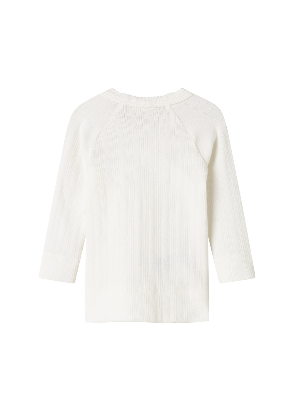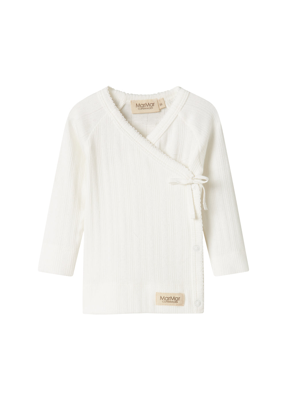 Hvid pointelle slå-om bluse til baby med lange ærmer