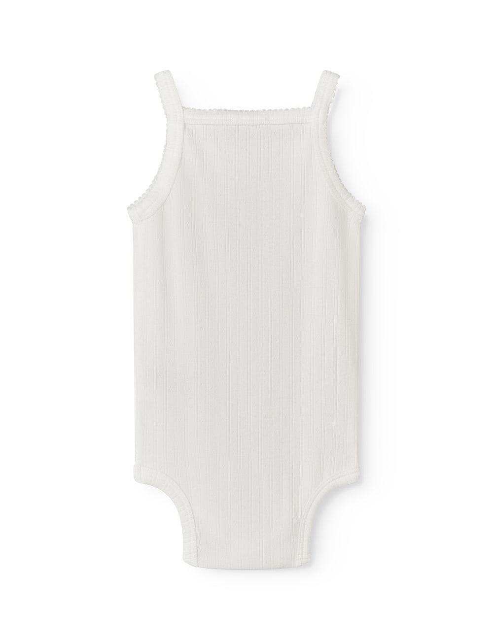 Hvid langærmet pointelle heldragt med slå-om-lukning til nyfødte