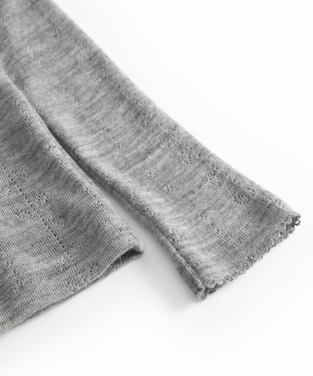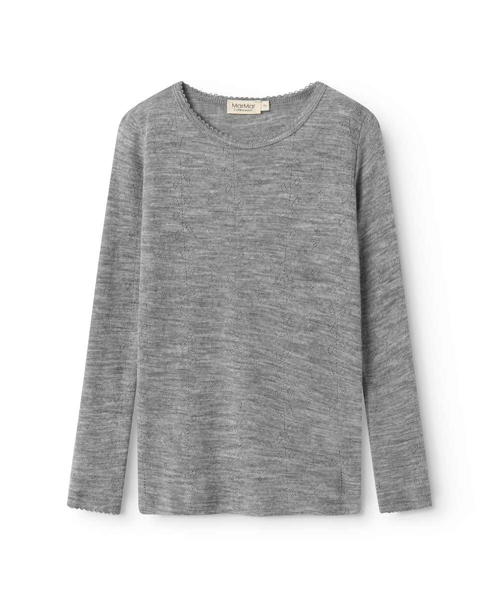 Tamra, Uld Pointelle T-shirt - Grey Melange