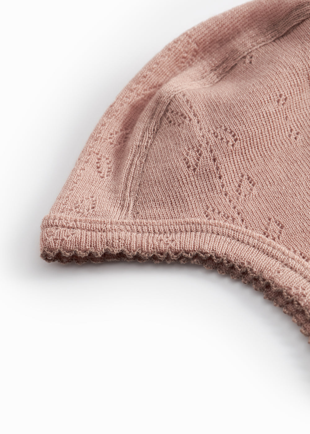 Hoody, Uld Pointelle Hue - Burnt Rose
