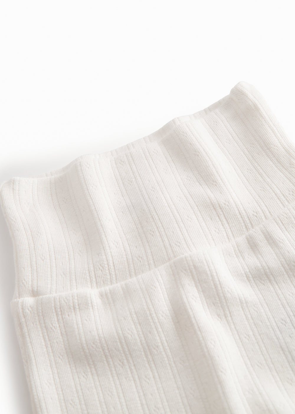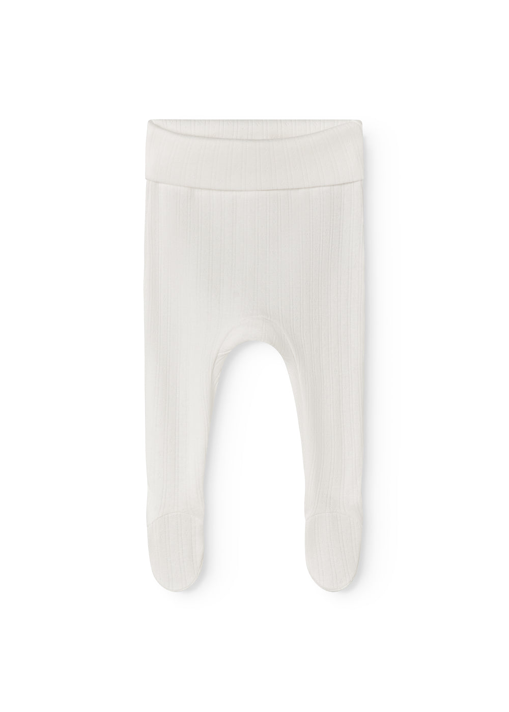 Behagelige pointelle bukser med fødder til de nyfødte. Bukserne er bløde, strækbare og behagelige at have på.