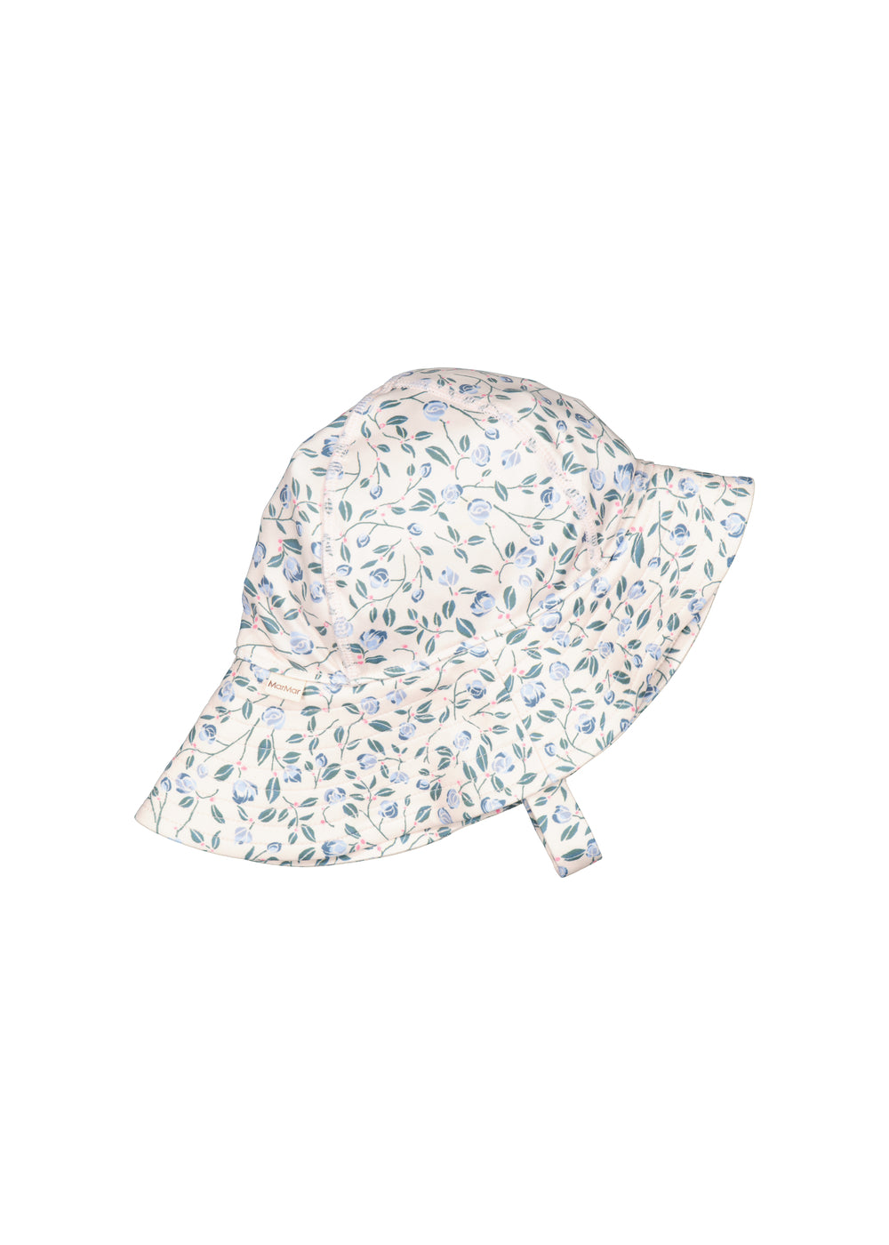 Sommer solhat med bred skygge som er længere i nakken. Strop med knaplukning i 2 længder