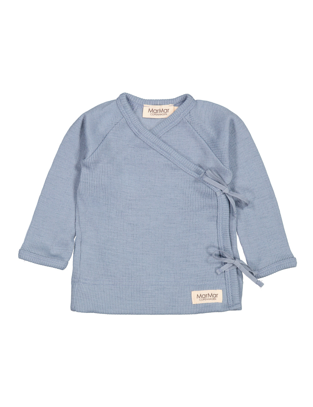 Tut Wrap LS, Uld Rib Bluse - Monsoon Blue