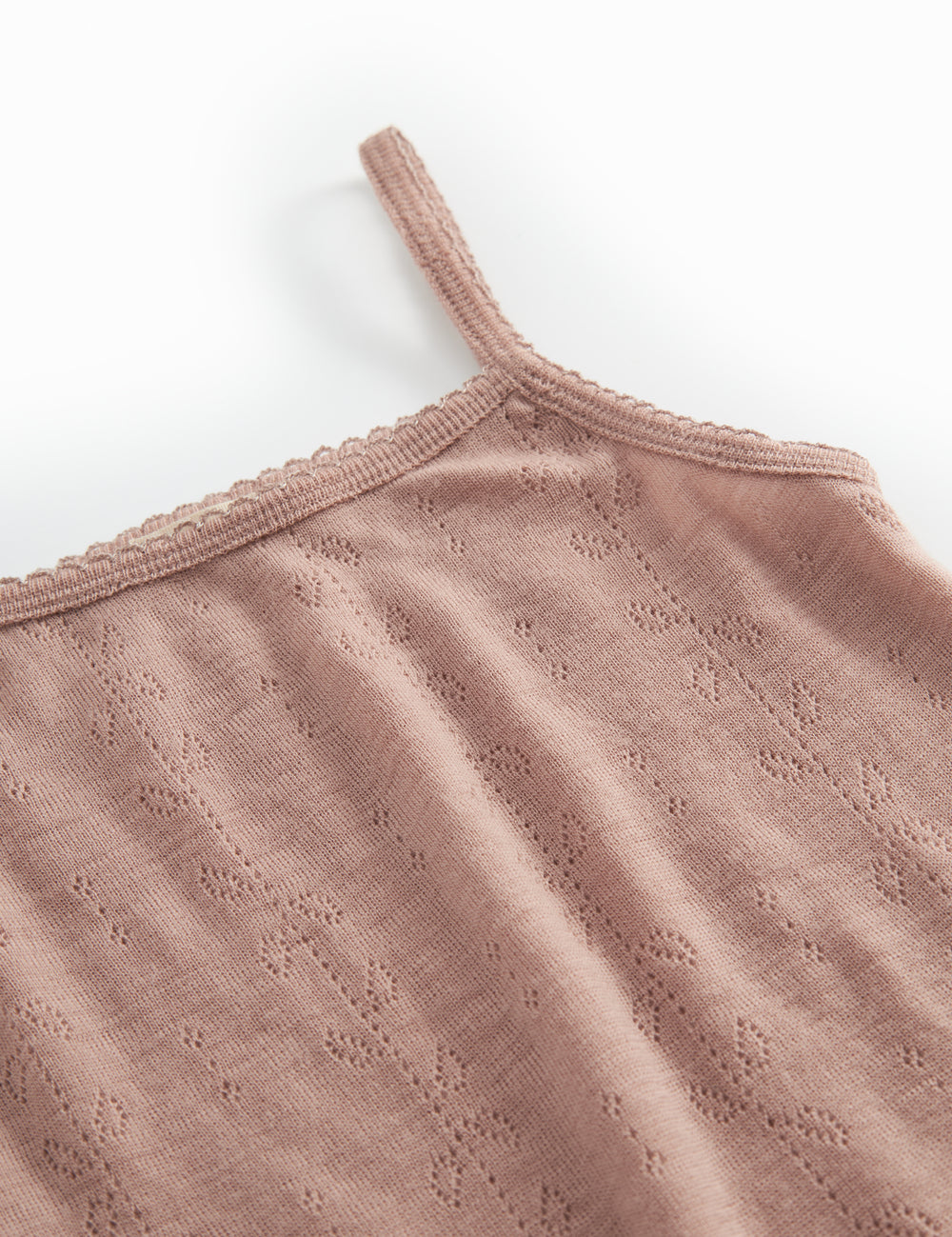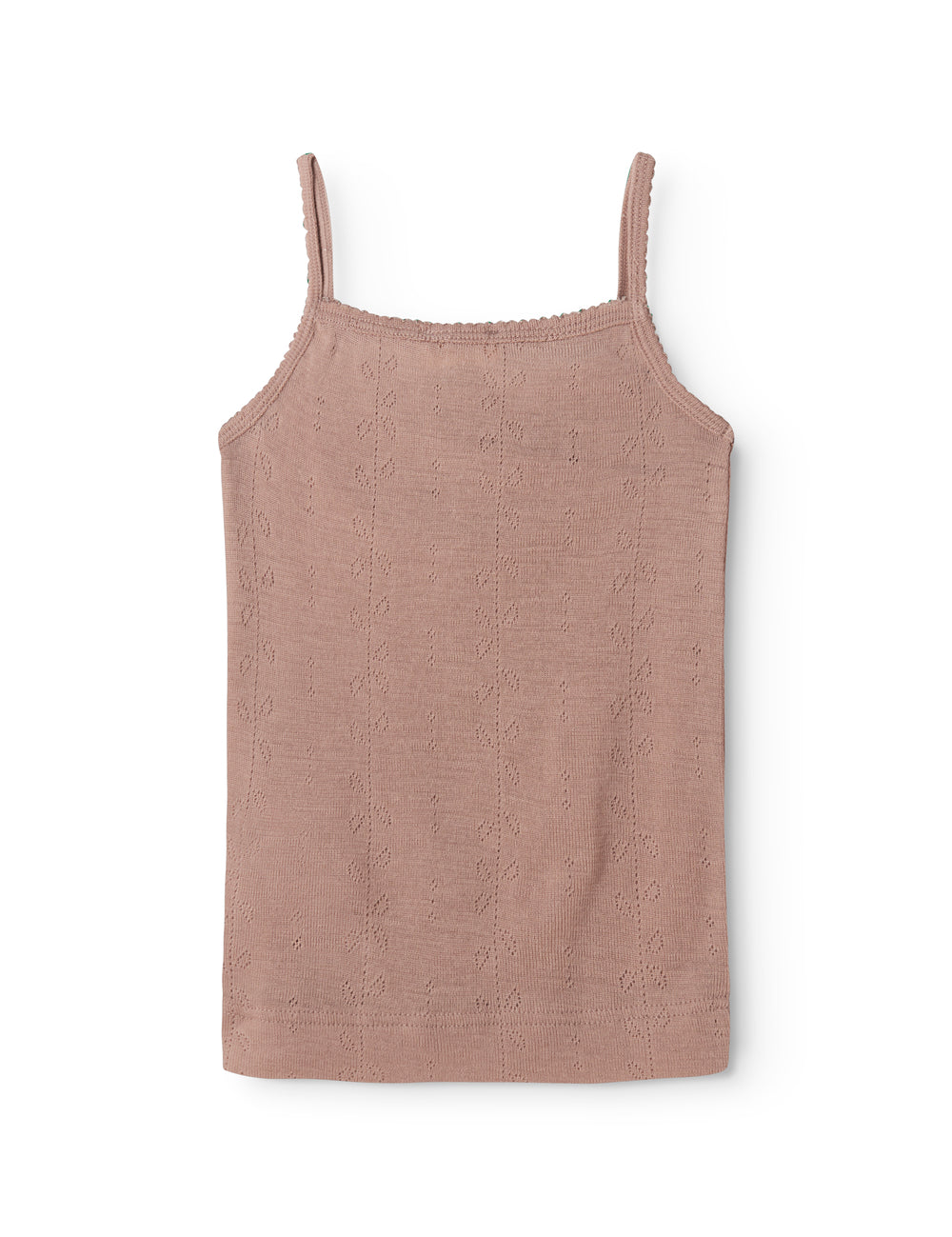 Strap Vest, Uld Pointelle Undertrøje - Burnt Rose