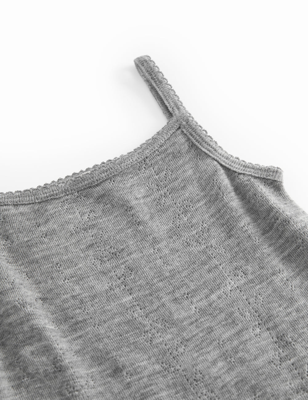 Strap Vest, Uld Pointelle Undertrøje - Grey Melange