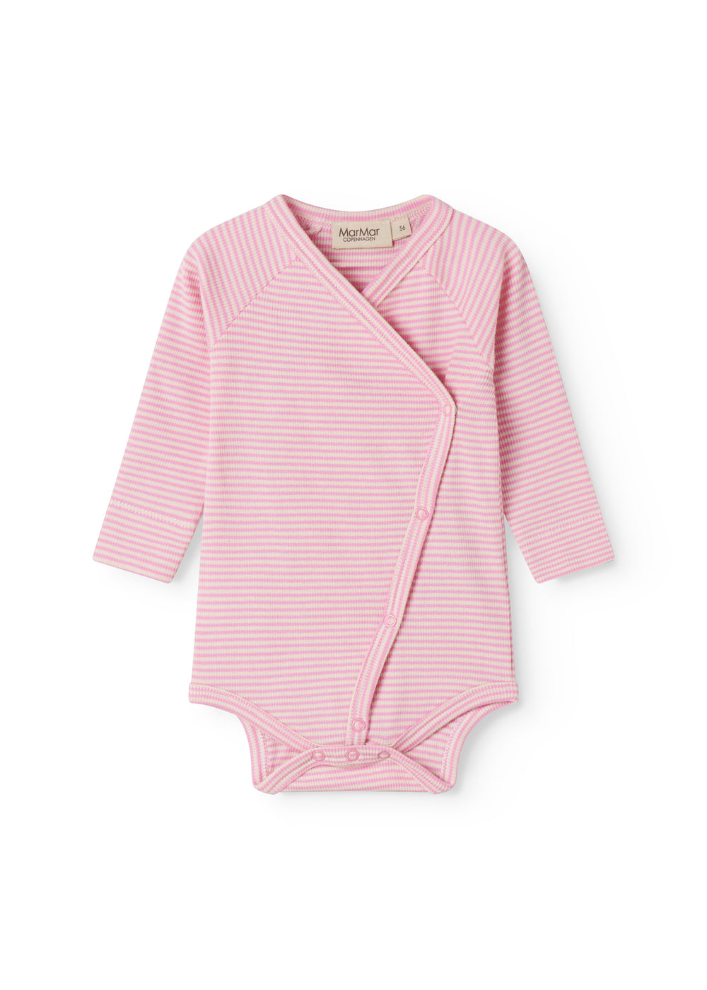 Langærmet bodystocking med fine striber og praktisk slå-om-lukning, der lukkes med små diskrete trykknapper hele vejen ned samt mellem benene for nem bleskiftning. Bodystockingen er både blød, strækbar og behagelig at have på.