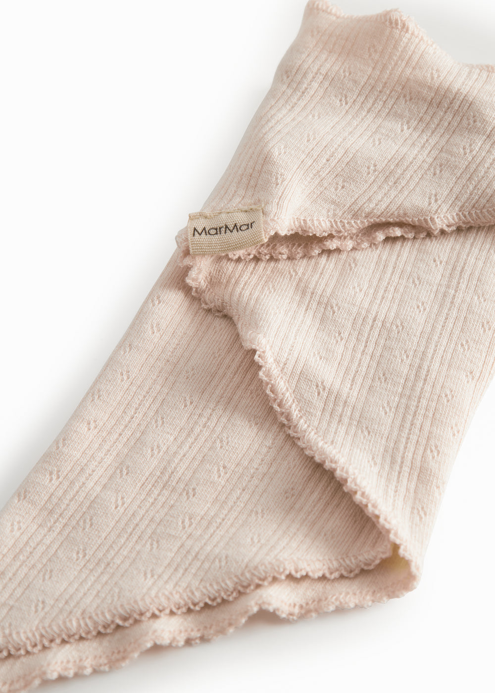 Rundt tørklæde med pointelle detaljer og picotkanter der måler 55 x 23cm. Tørklædet er både blødt, strækbart og behageligt at have på.