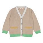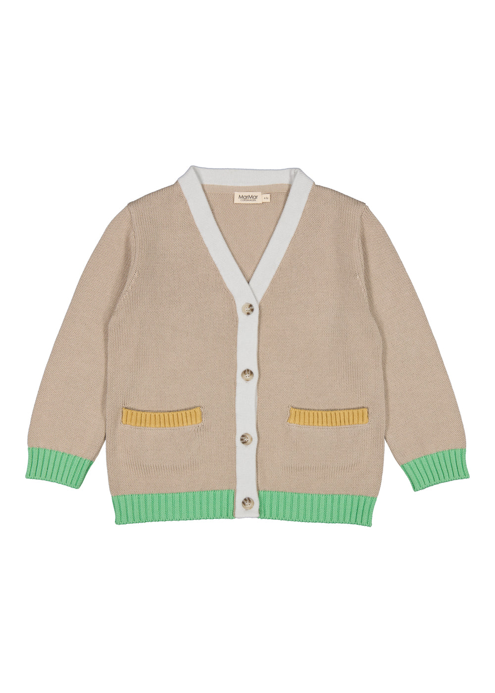 Strik cardigan med knaplukning, to rummelige lommer foran og dekorative colour block detaljer