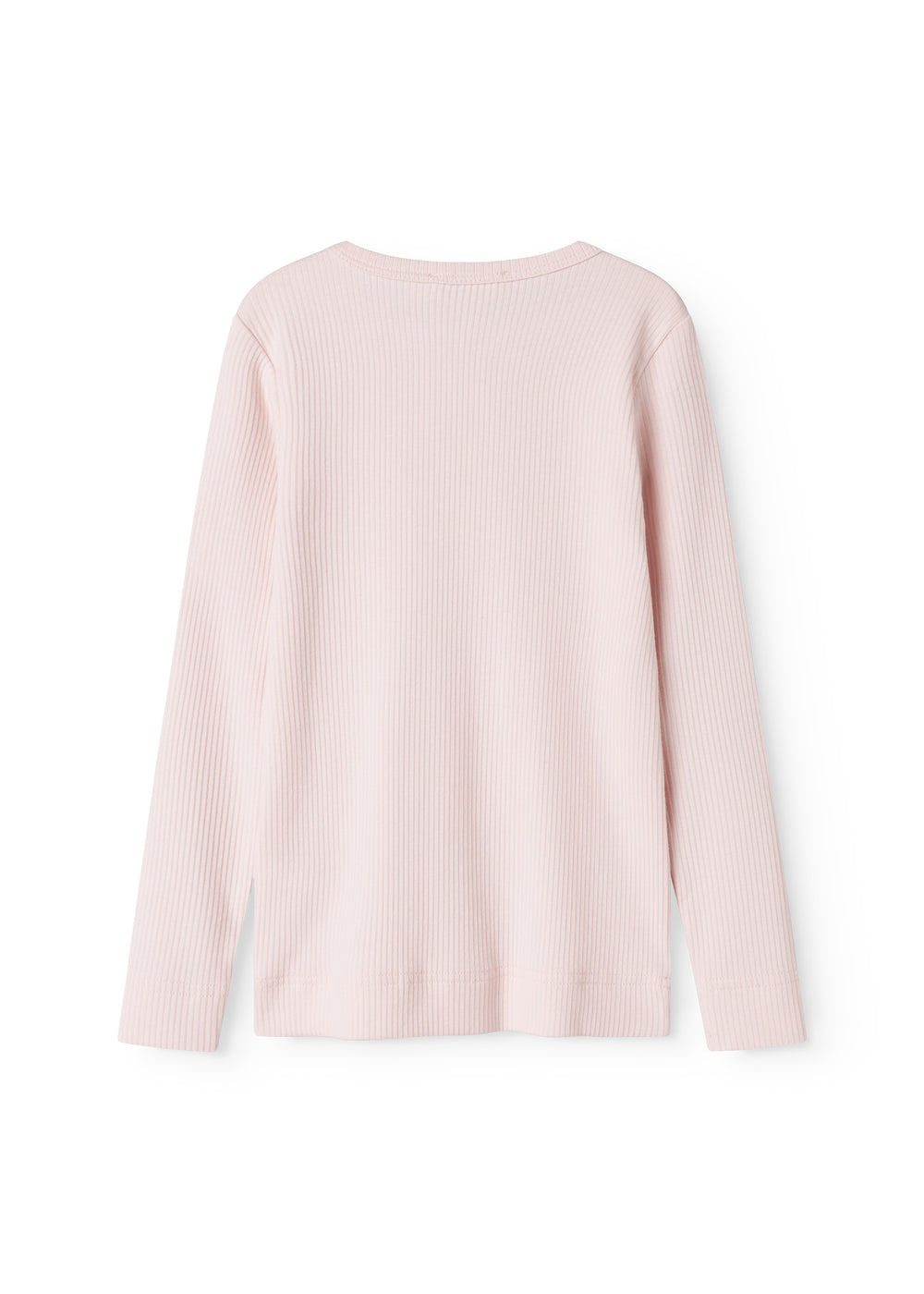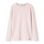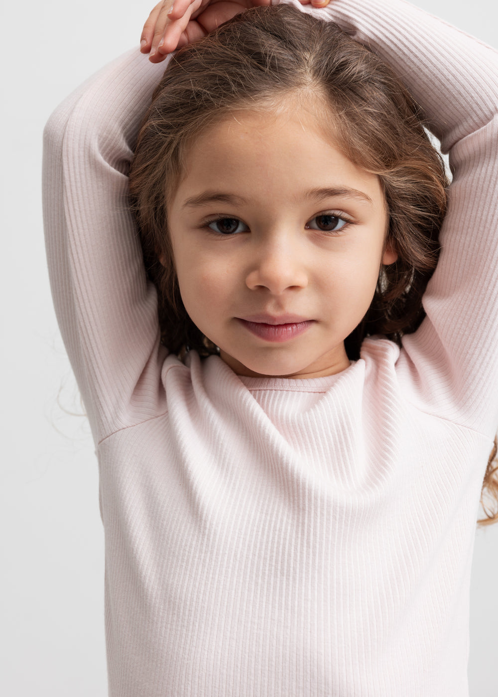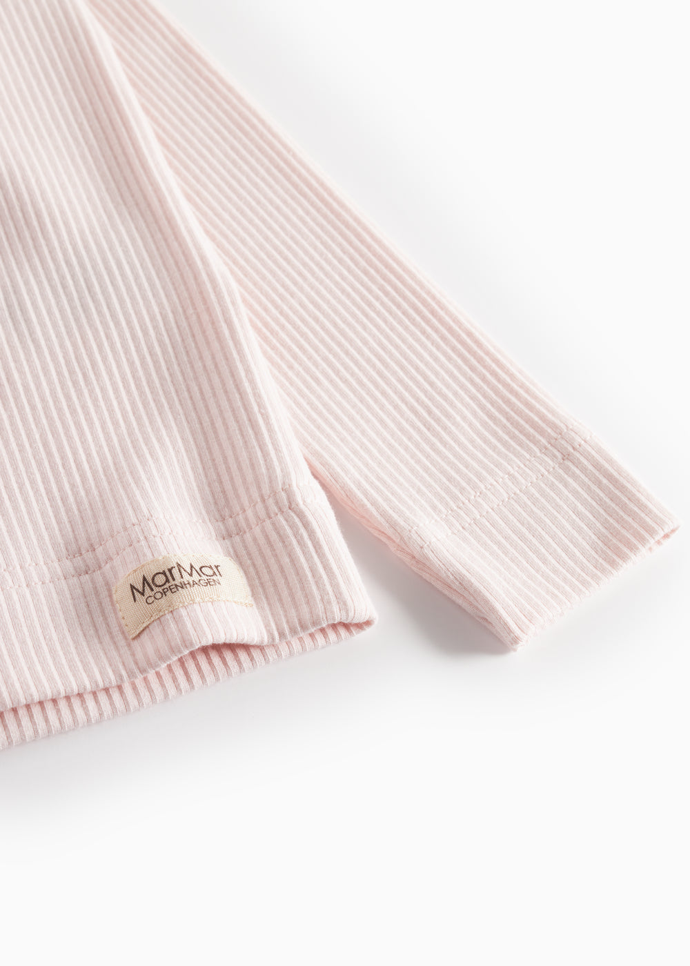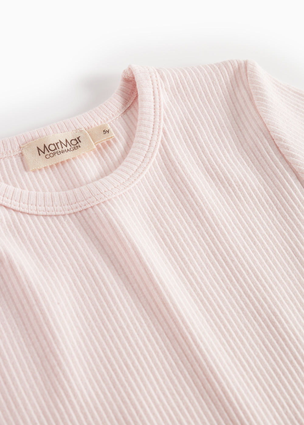 T-shirten er både ribstrikket, blød, holder form og farve og har elastan i sig som gør den strækbar og behagelig at have på.