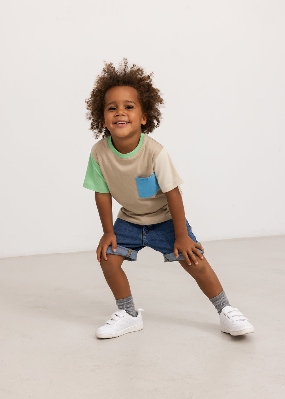 Kortærmet t-shirt med farveblock og en lomme på brystet