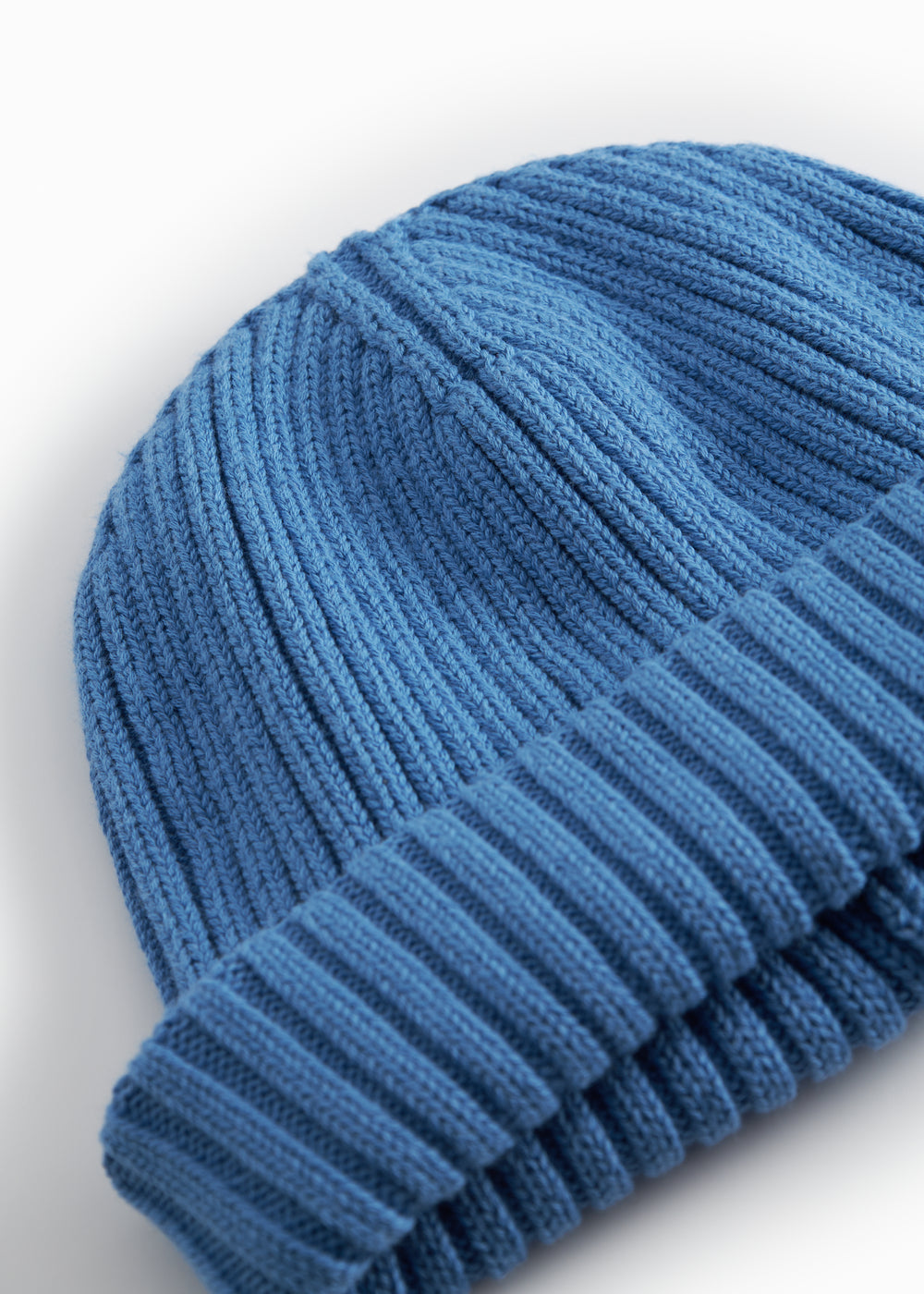 Klassisk beanie med bredt ombuk i kanten der både kan bruges med et eller to ombuk. Huen er både varm og behagelig at have på og perfekt til foråret.