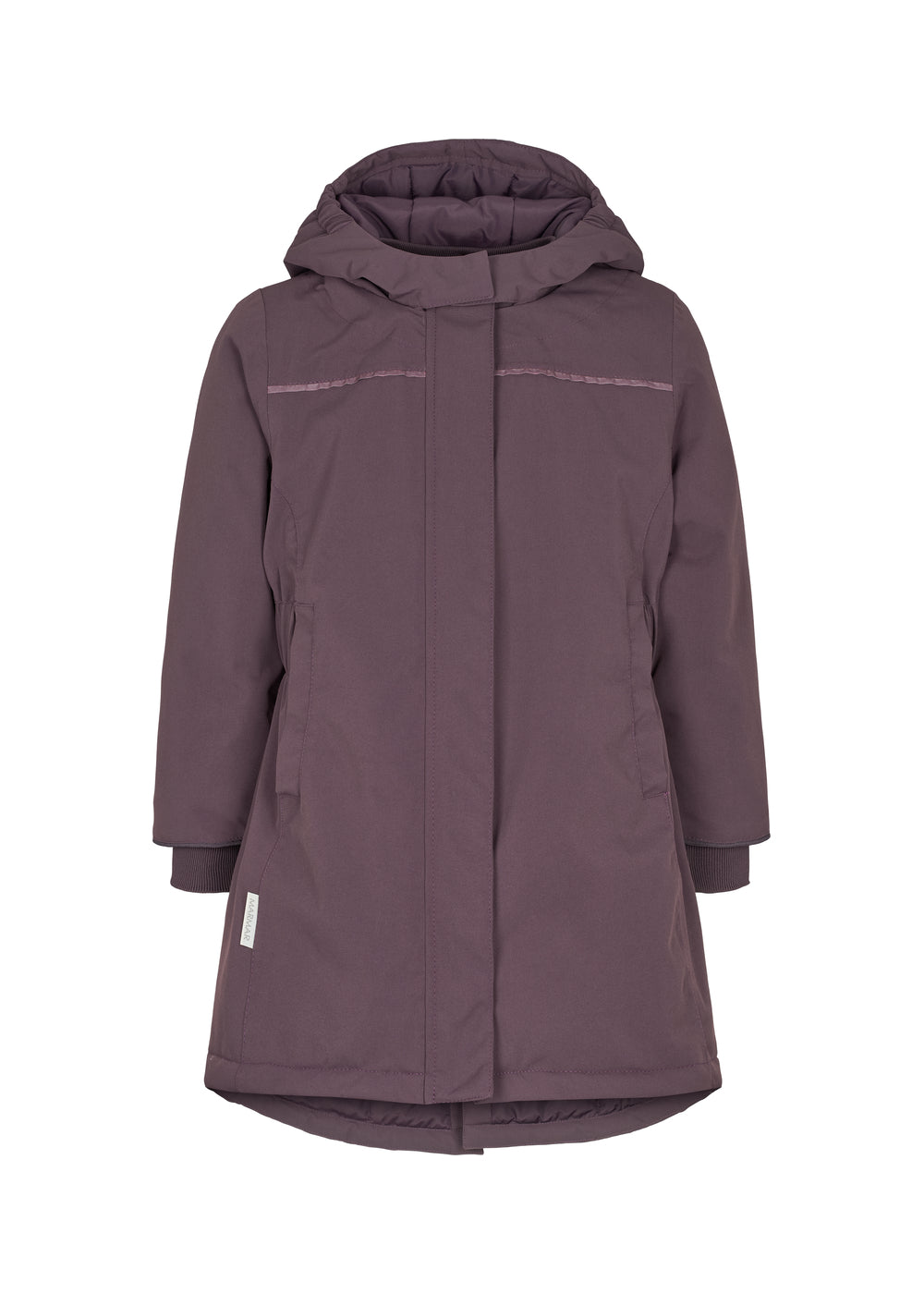 Vinterjakke til børn som er lang, praktisk og feminin med elastik i taljen. Vinterjakken har to lommer i siden og har aftagelig hætte. Jakken er perfekt vinterovertøj i slidstærkt materiale og med thermolite isolering der sikrer en varm og tempereret kropstemperatur.
