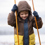 Vi bruger Thermolite som er et polyesterisoleringsmateriale. Det er let og luftigt og tillader luft at cirkulere rundt om dit barns krop. Dette regulerer barnets kropstemperatur og holder det behageligt varmt. Alle vores lommer er foret i matchende farve blød polyesterfleece.