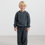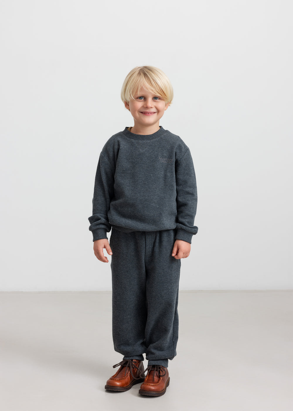 Sweatbukser til børn i et mere løst fit med elastik i livet samt to lommer i siden og en lomme bagpå. Sweatbukserne er meget bløde og behagelige at have på.