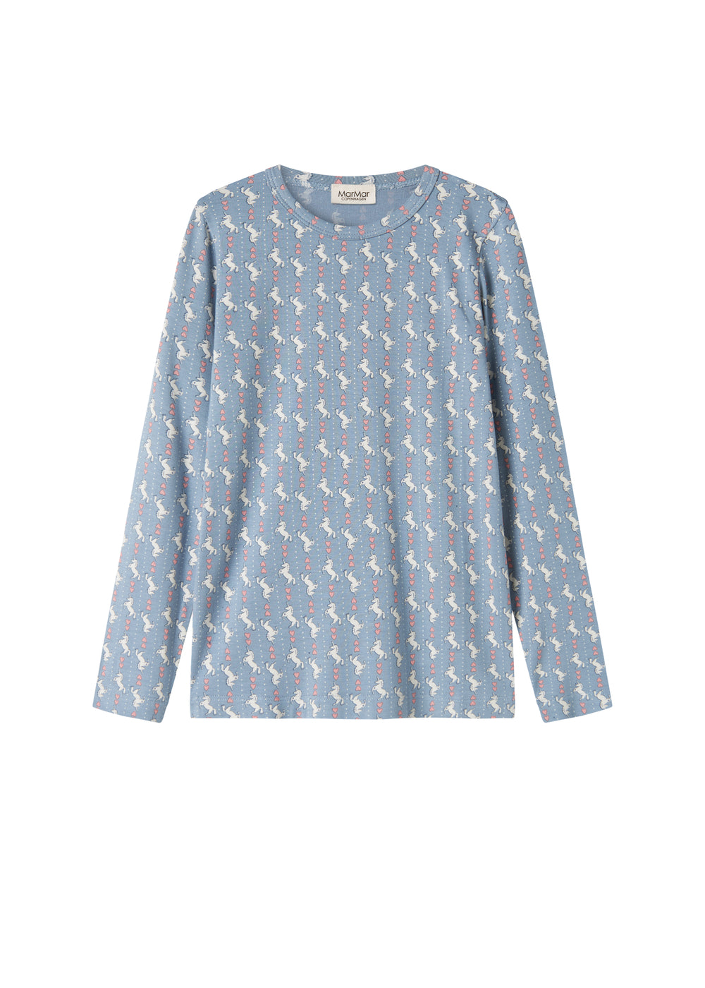 Enkel langærmet t-shirt til børn med sødt enhjørning print. T-shirten er både blød, strækbar og behagelig at have på.