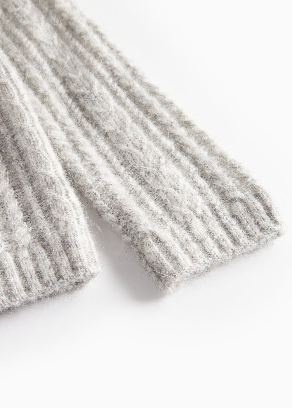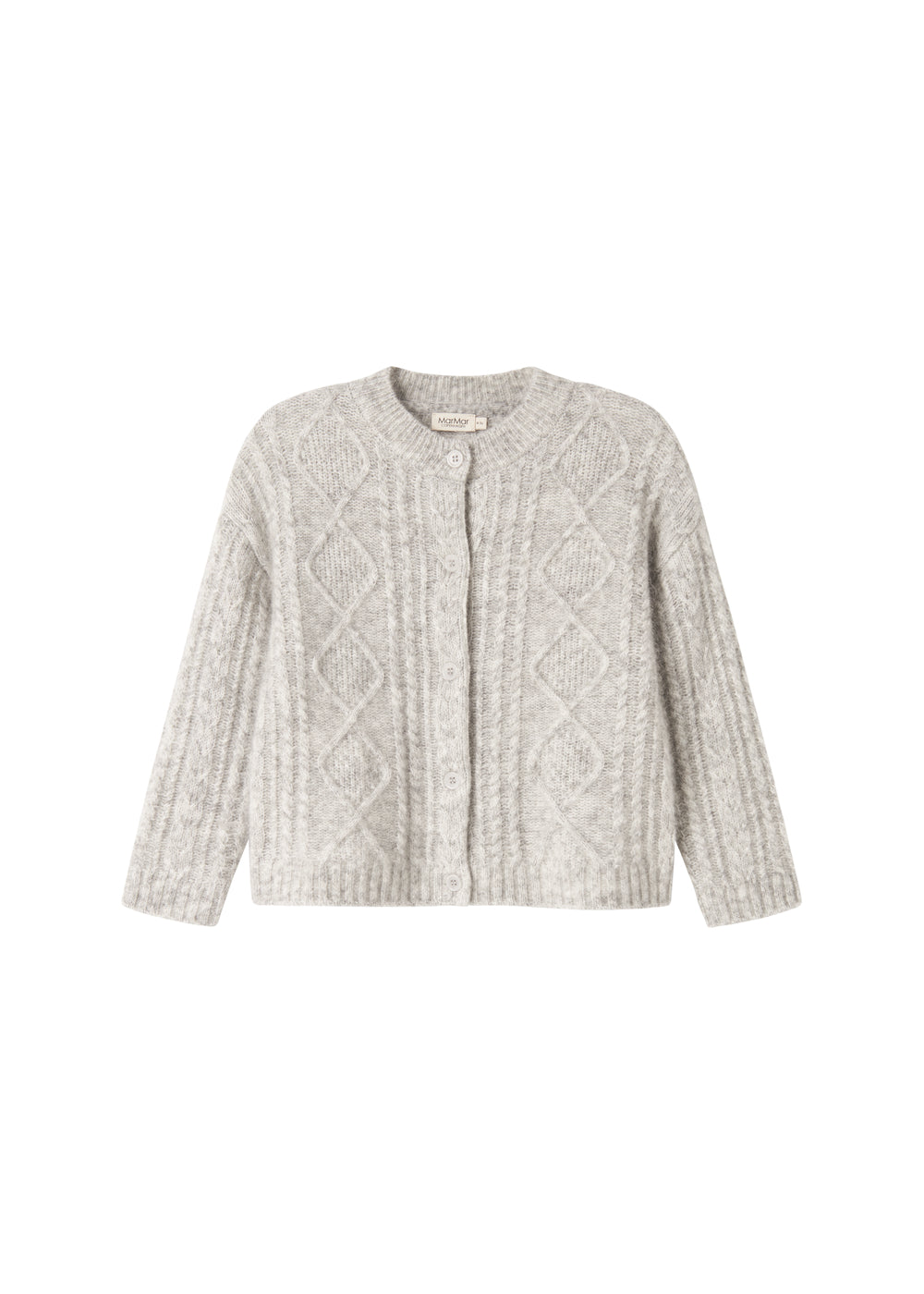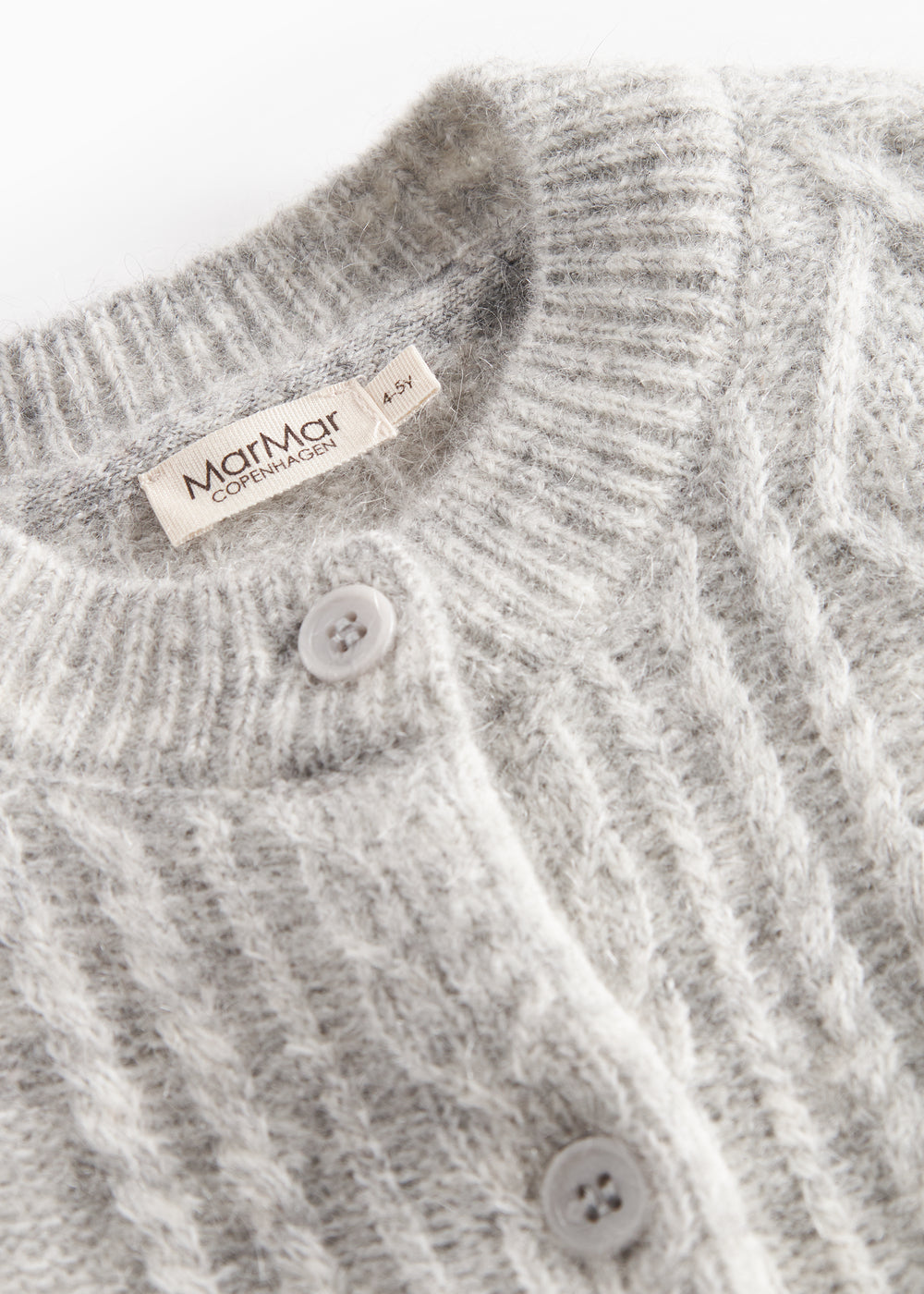 Varm og behagelig mohair strik cardigan til børn med kabelstrik detaljer og knaplukning foran. Cardiganen er perfekt til de koldere dage.