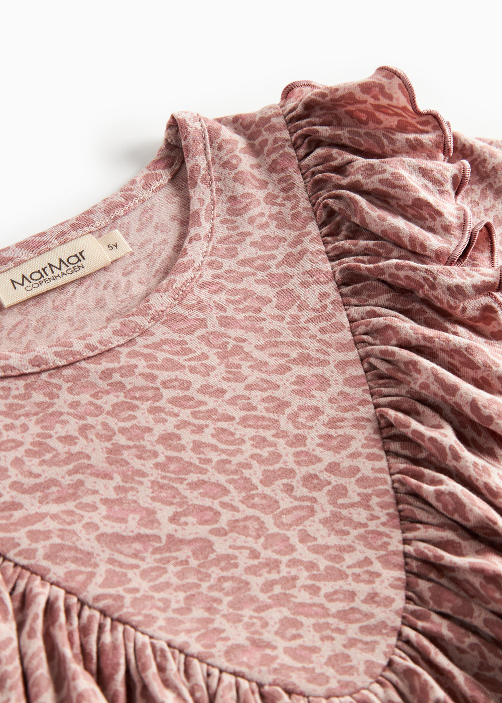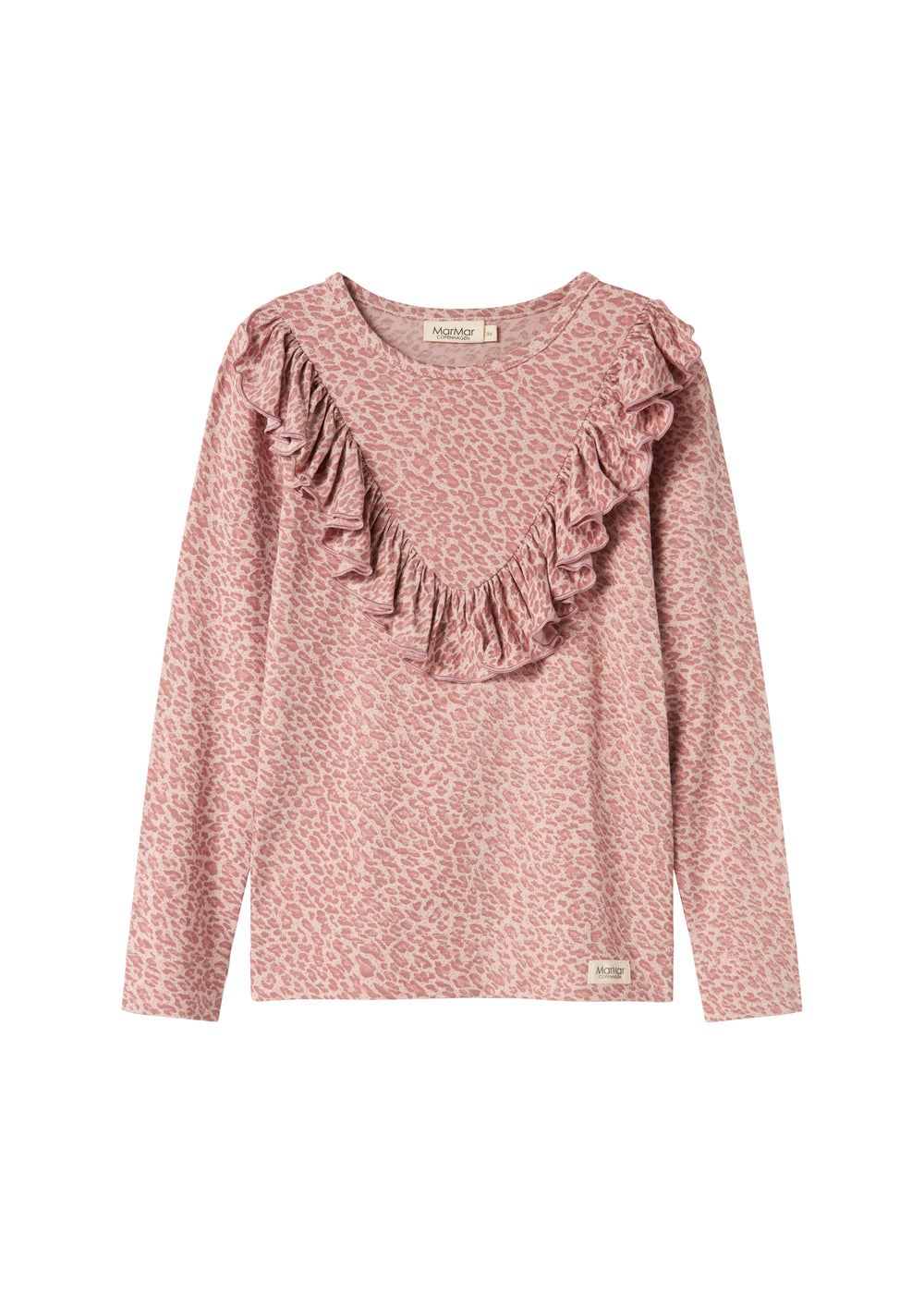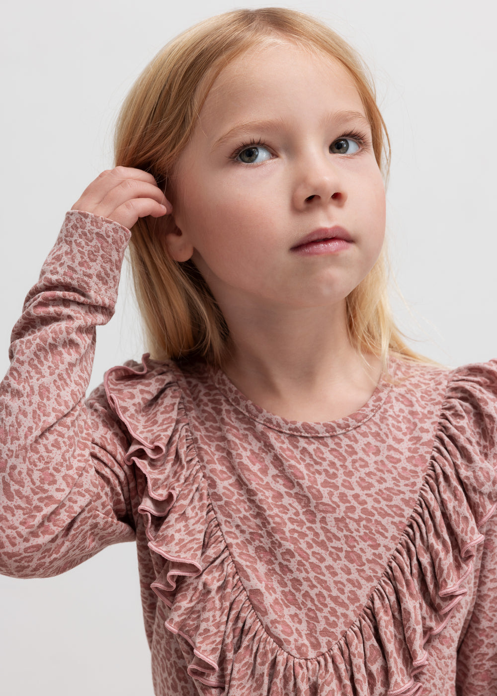 Langærmet leopard t-shirt med flæsedetaljer foran. T-shirten er meget blød, strækbar og behagelig at have på.